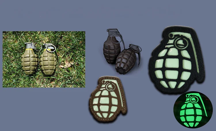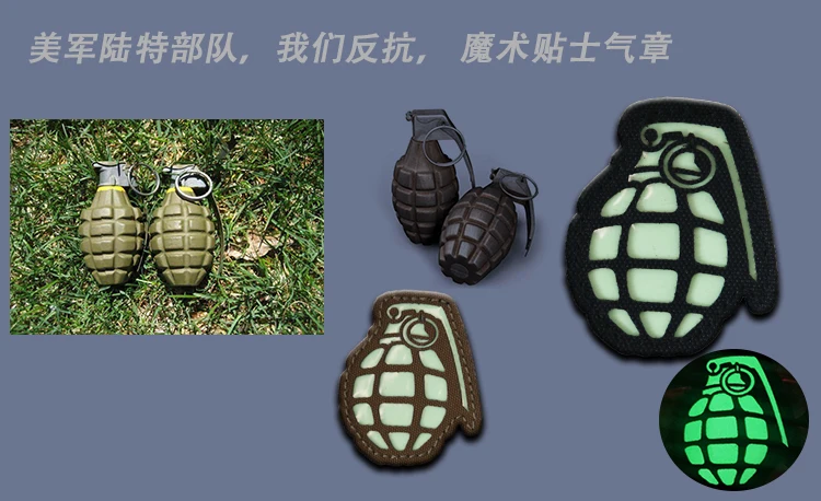 Pegatina mágica de Granada táctica que brilla en la oscuridad, insignia de hombro, brazalete luminoso, 48x58mm