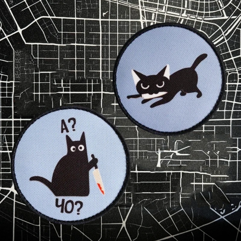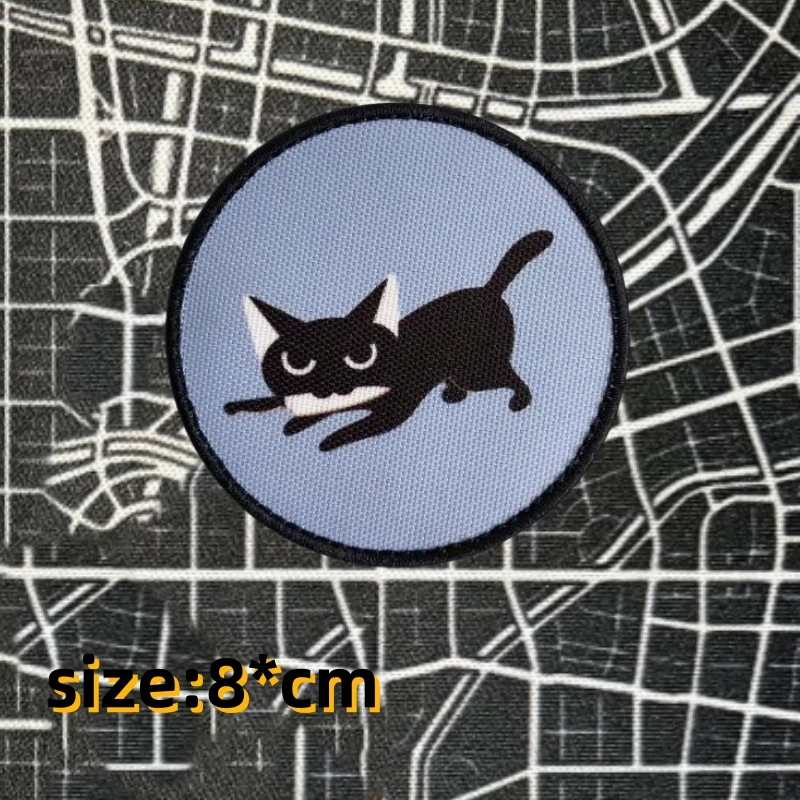 Robert's Cat Tactical Backpack Sticker Funny Meme Cat con un cuchillo Hook & Loop Morality Badge Chevron Morale Badge Parches de tela