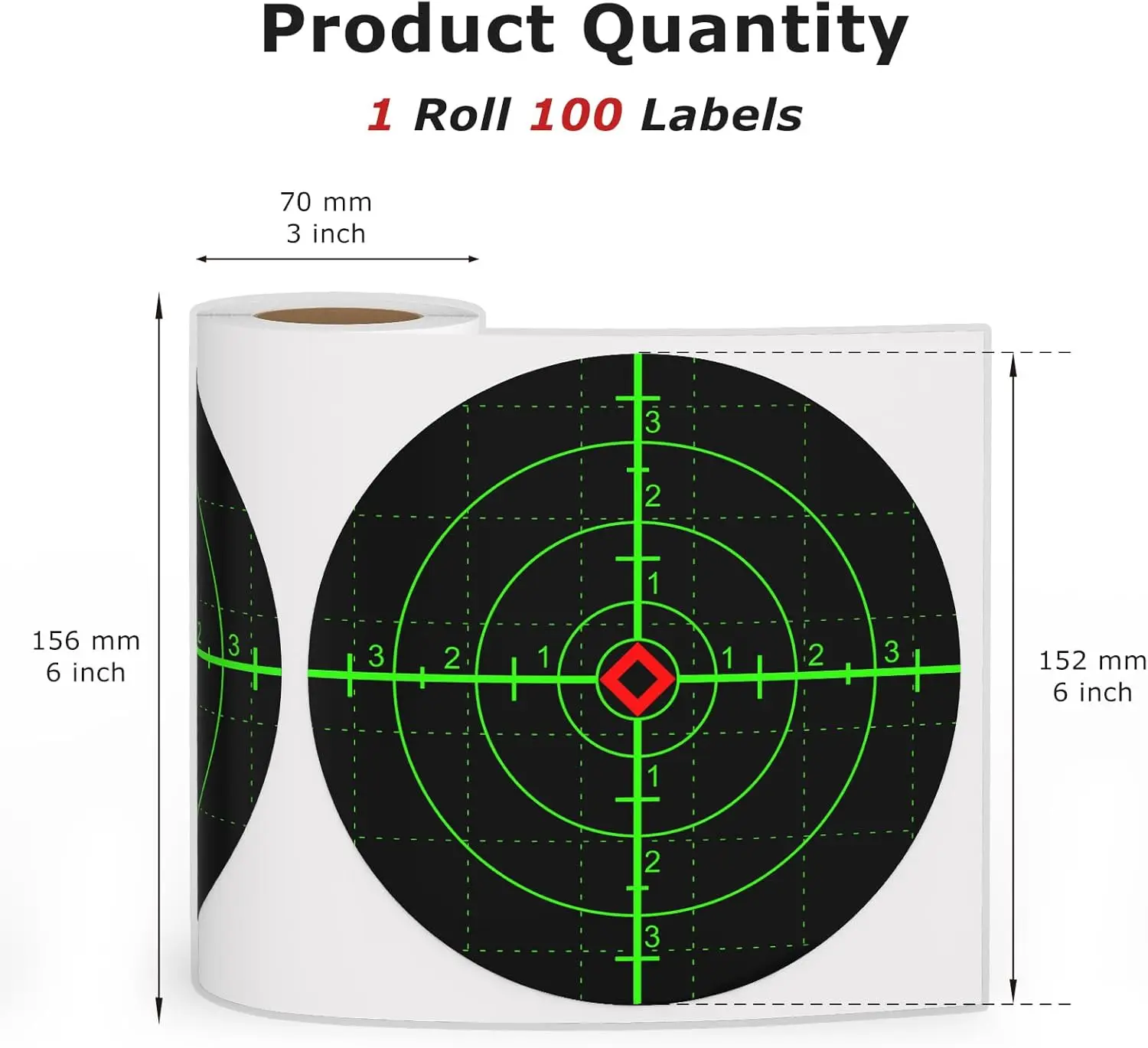 3. 【Diseño conveniente y portátil】 Empaquetados en un rollo, estos objetivos de tiro para el campo son muy fáciles de transportar y almacenar.Ya sea que vayas al campo de tiro o practiques en tu patio trasero, el tamaño compacto y las 100 pegatinas por rollo significan que siempre estás listo para comenzar. Por papel adhesivo de tiro medido 6''x 6''.