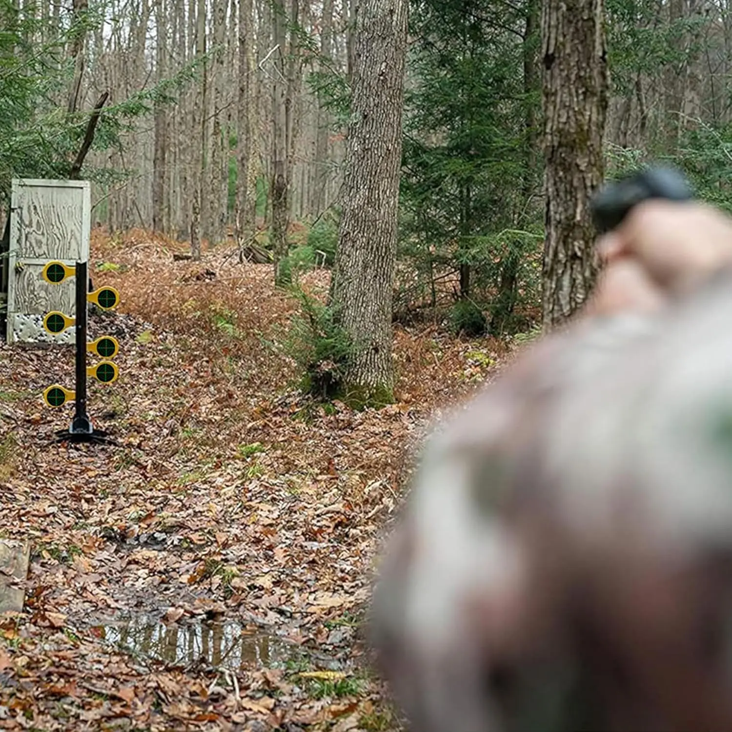 1. 【Comentarios instantáneos】 Nuestros objetivos de disparo contra salpicaduras ofrecen un rendimiento extremadamente visible y brillante.Sobre el impacto, verá una ráfaga instantánea de color verde fluorescente brillante, lo que hace que sea muy fácil detectar tus tomas sin necesidad de binoculares.Esto ahorra tiempo y mejora su experiencia fotográfica.