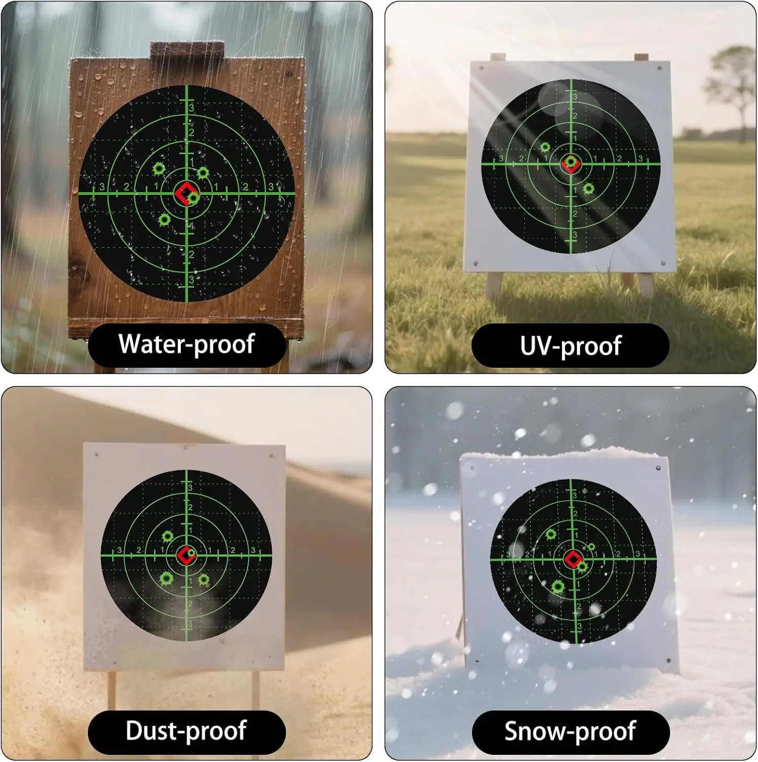 2. 【adhesivo de alta resistencia】 Cuenta con un respaldo autoadhesivo de alta resistencia que se adhiere de forma segura a una amplia gama de superficies, incluidos cartón, objetivos de papel, soportes de metal y más.Permanecen en su lugar durante todas las estaciones y se pueden quitar fácilmente sin dejar residuos, lo que garantiza que su área de práctica se mantenga limpia.