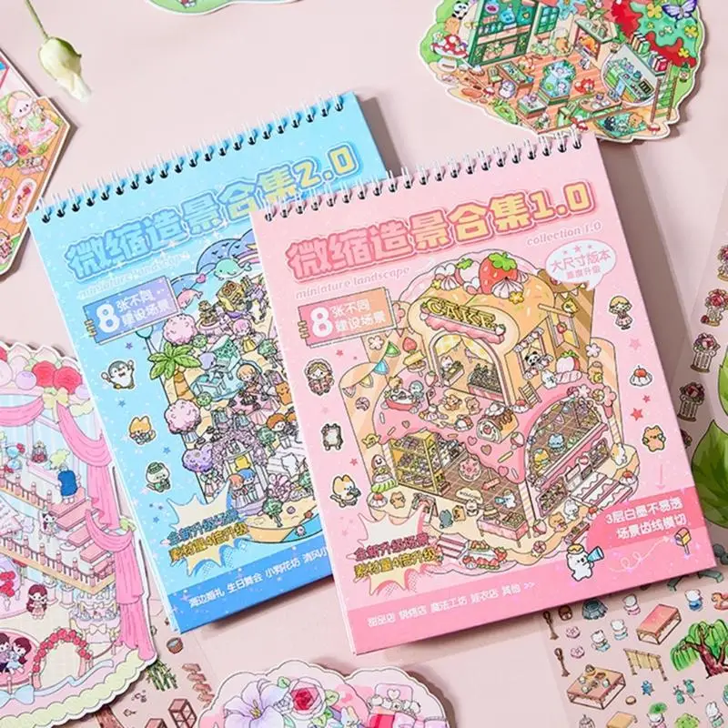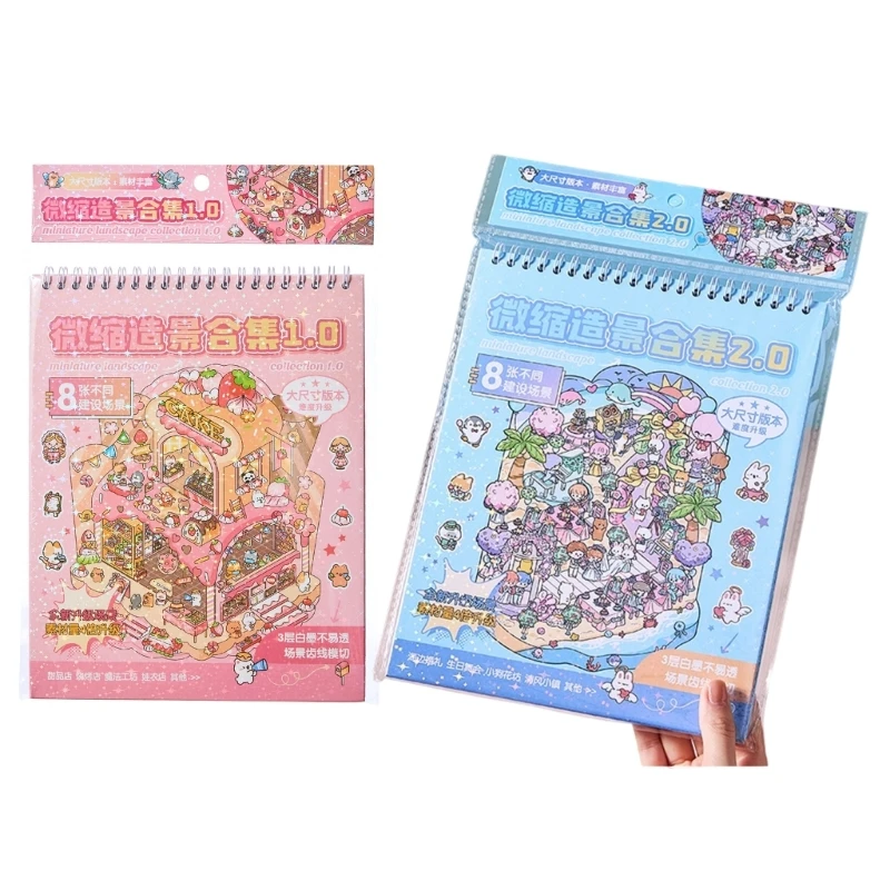 Perfect for parent seeks educational rewarding sticker, and teachers organizing classroom craft activities, this portable twin wire binding miniature scenes sticker book collection engages preschoolers and children through in imaginative play.