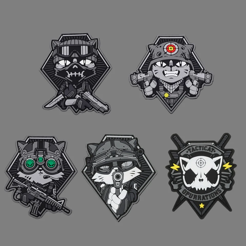 Pegatina de parche de PVC para gato en ropa, accesorios tácticos y militares, parches de gancho y bucle, mochila bonita Wappen