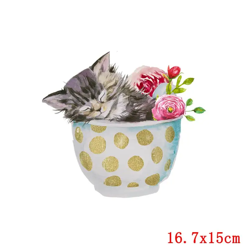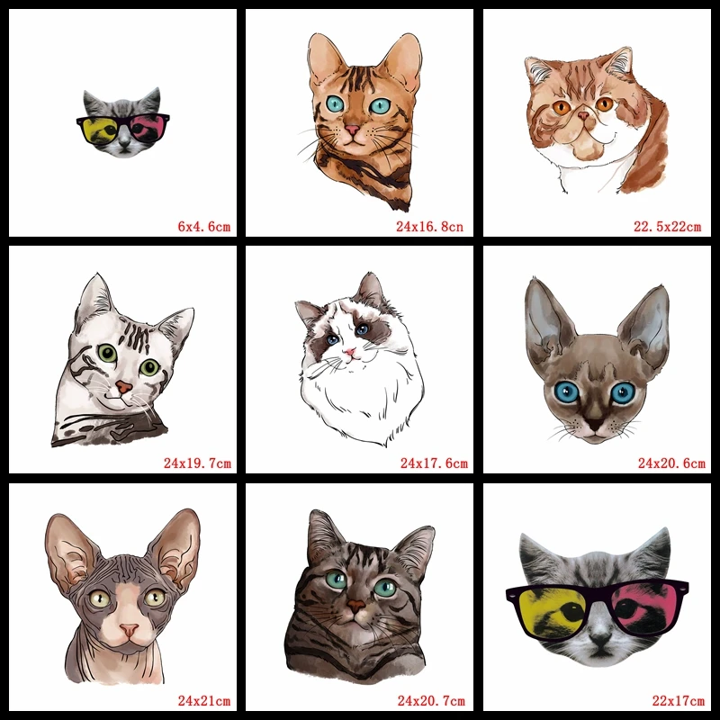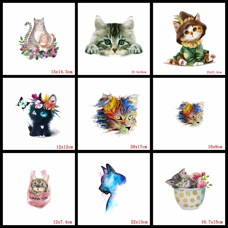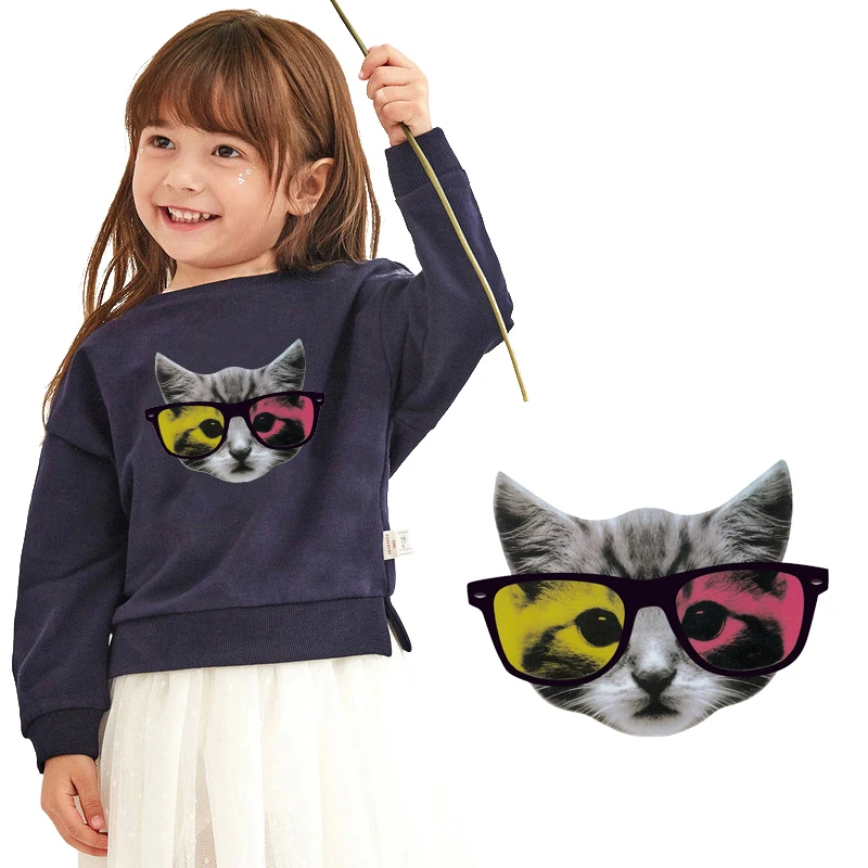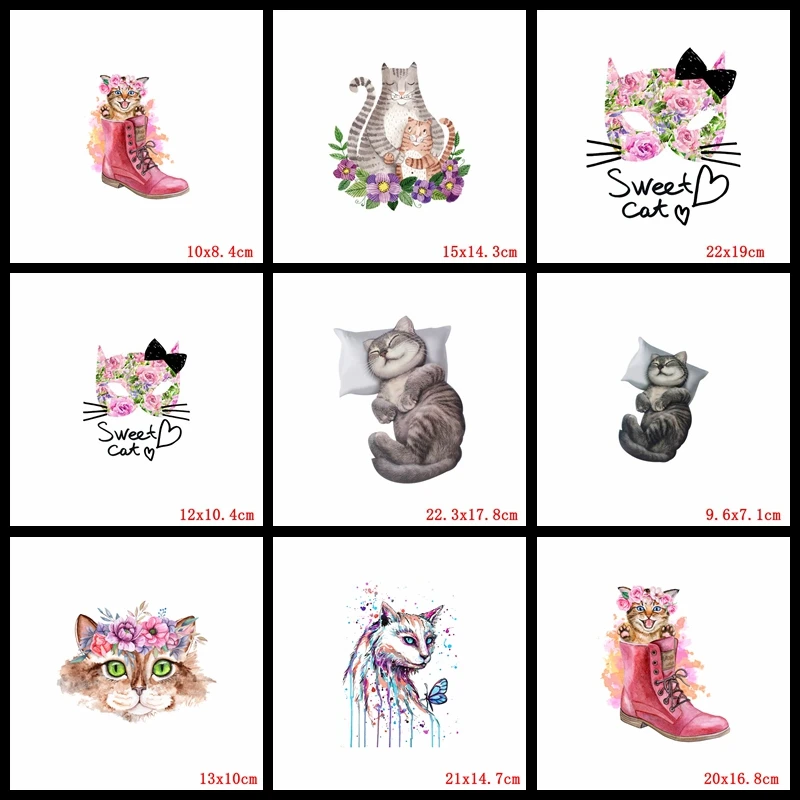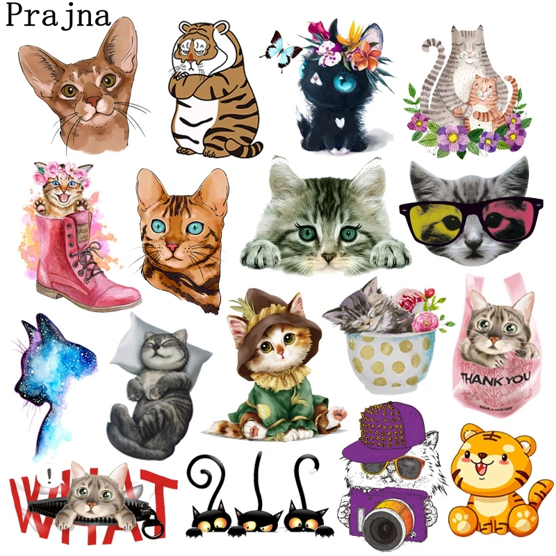 Cartoon Cat Thermal Sticker For Clothes Applique Animal Iron-On Transfers Patches For Clothing Stickers Iron On Patches DIY