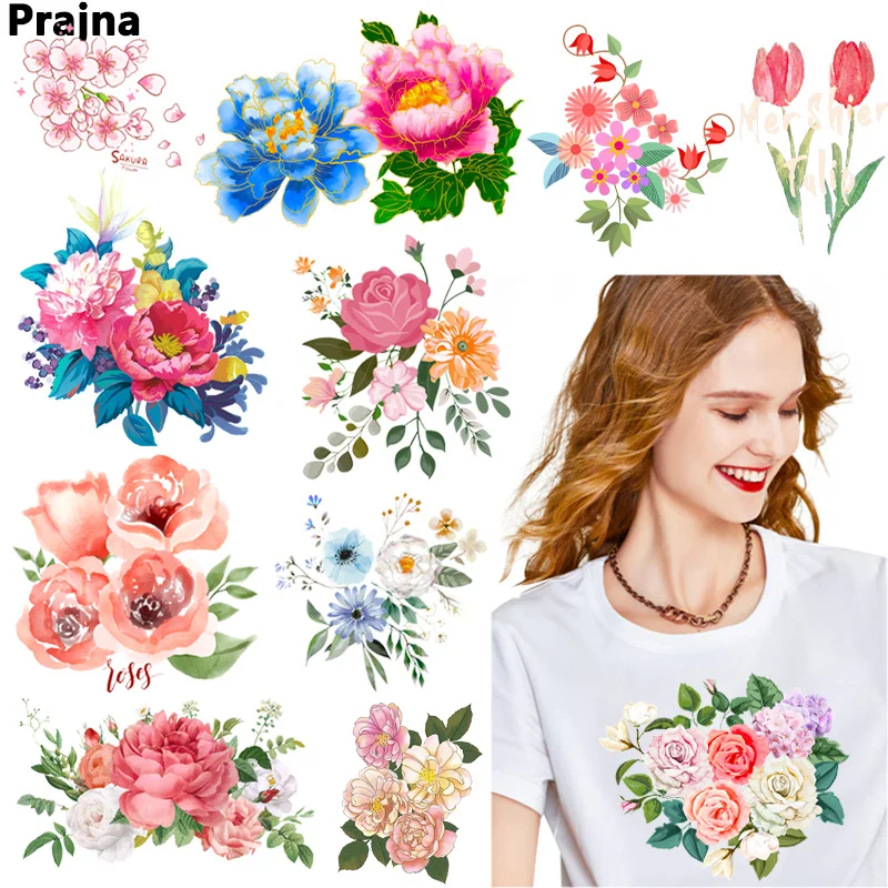 Pegatina térmica de transferencia de calor de flores a la moda para camiseta, parches lavables DIY para ropa, transferencia de hierro para sudaderas con capucha, decoración de bolso
