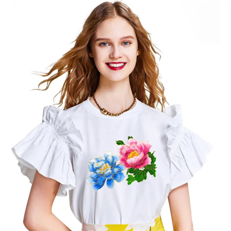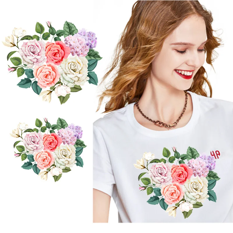 Adhesivo térmico de transferencia de calor de flores a la moda en camisetas, parches lavables DIY en ropa, transferencia de planchado para sudaderas con capucha, decoración de bolsos