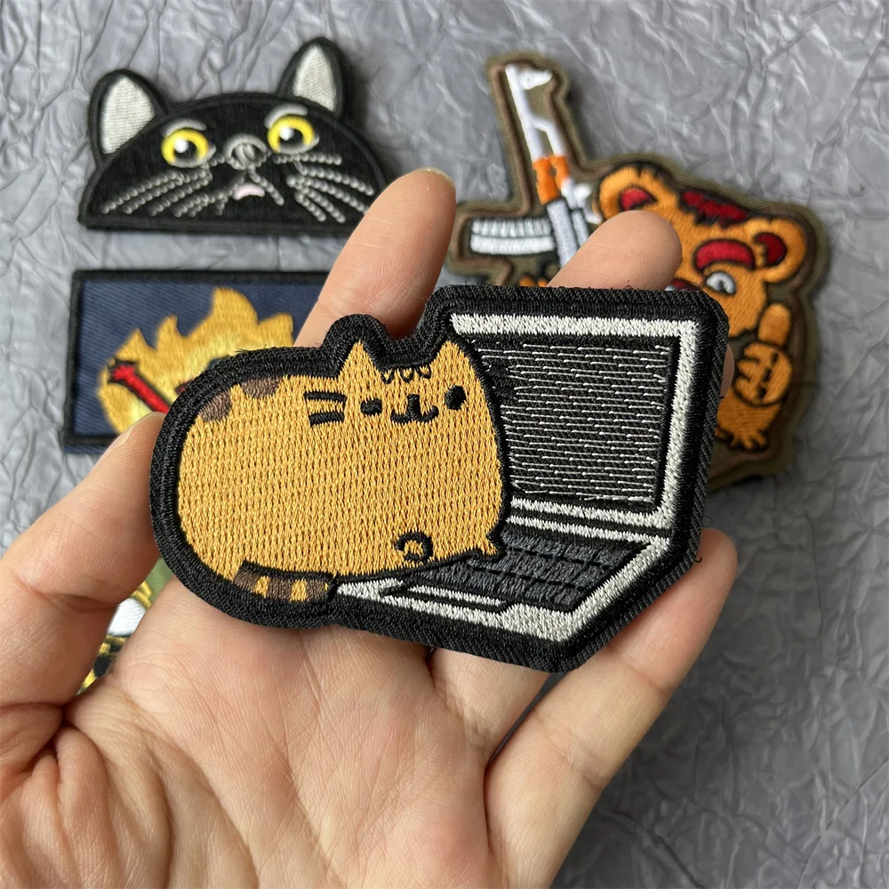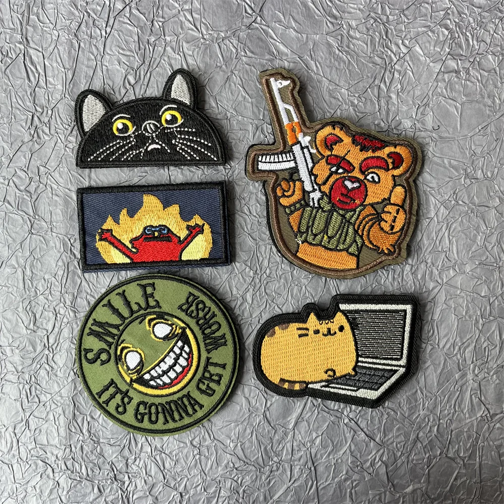 Pegatinas bordadas de animales para ropa, insignias de oso y gato, equipo táctico, parche militar, parches de gancho y bucle, mochila