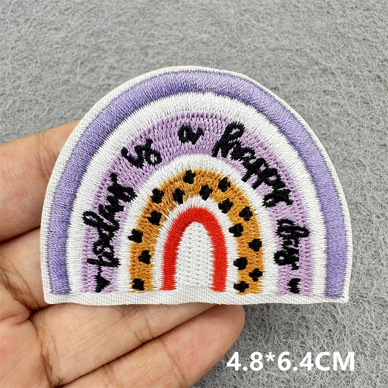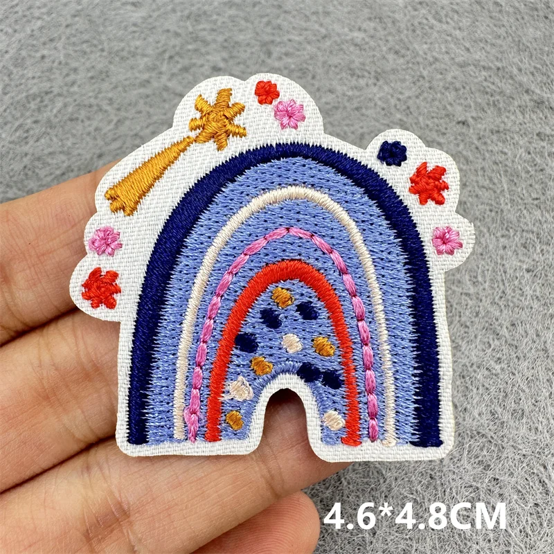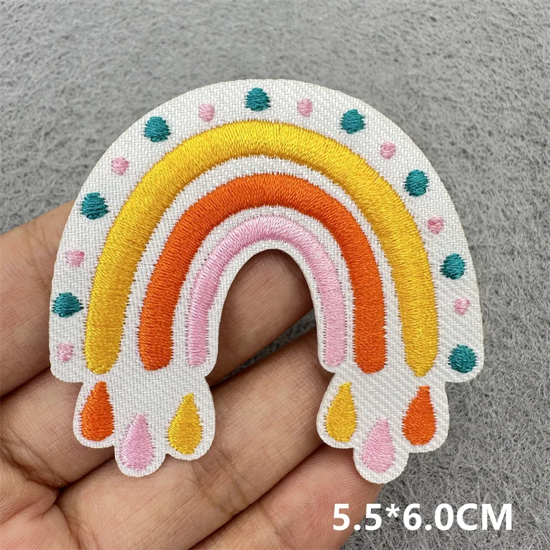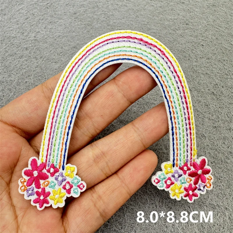 Pegatinas bordadas de arcoíris de dibujos animados para ropa, parches para planchar para ropa de niños, parches bordados de flores, parche Fusible DIY