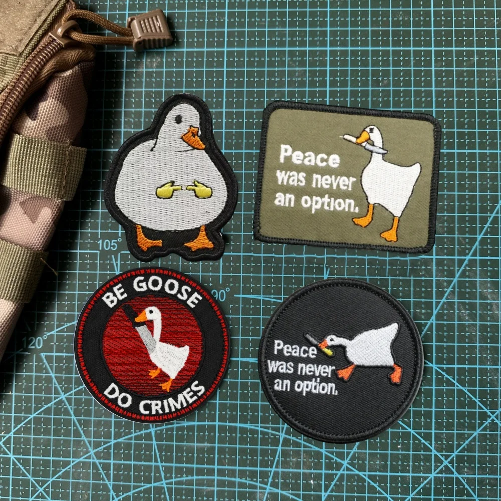 Pegatinas de bordado de ganso de dibujos animados en la ropa, parches de gancho y bucle, mochila, animales divertidos, insignias de parche táctico