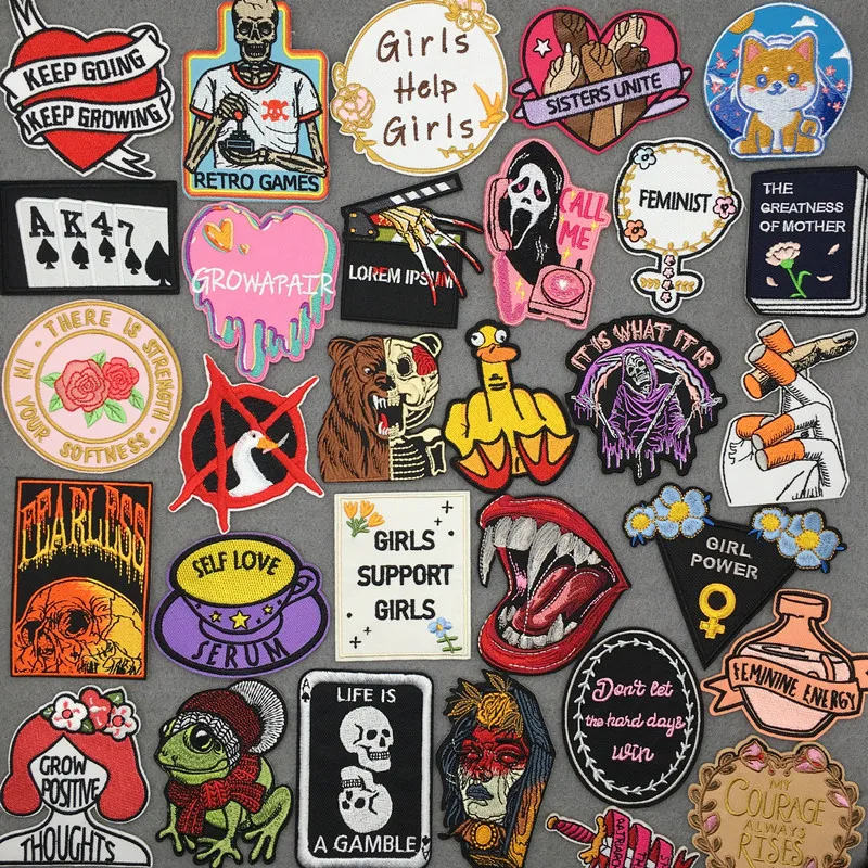 Pegatinas de calavera Punk, parches de hierro para ropa, parches termoadhesivos, letras de dibujos animados, parches bordados en la ropa, insignias DIY