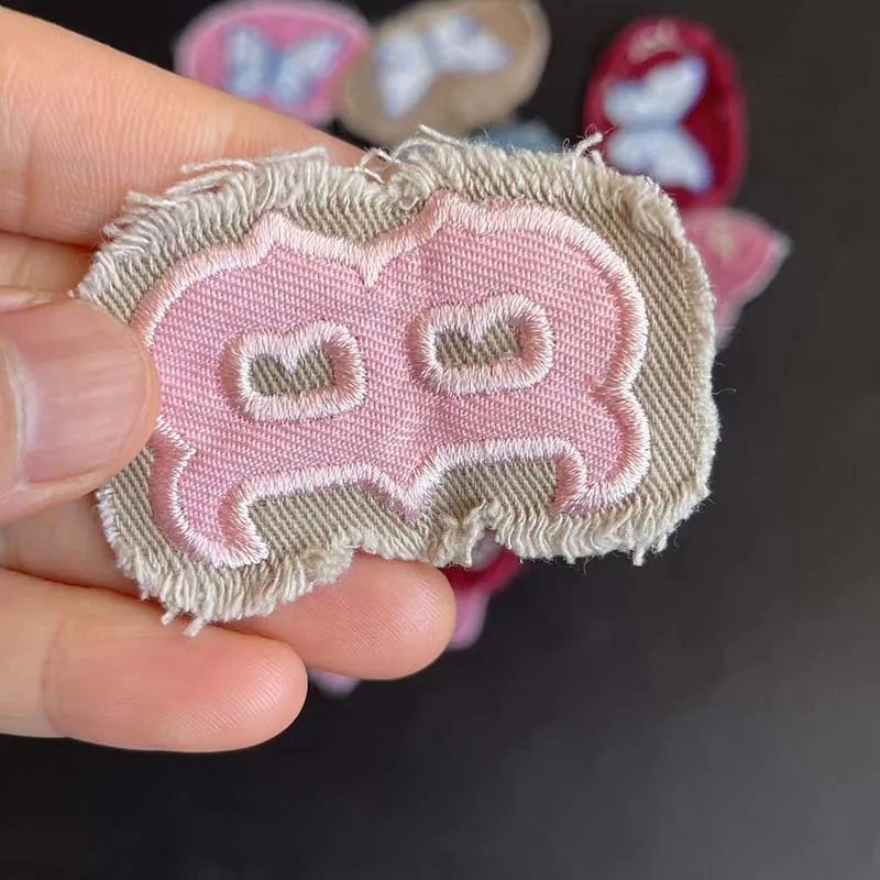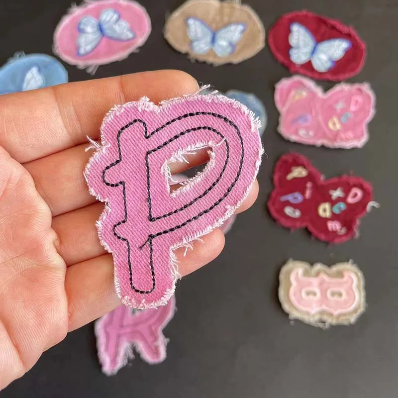 Pegatinas de dibujos animados para ropa, insignias de letras, corazón, mariposa, apliques de tela, bordado, parches cosidos para Jeans, ropa, 5 piezas