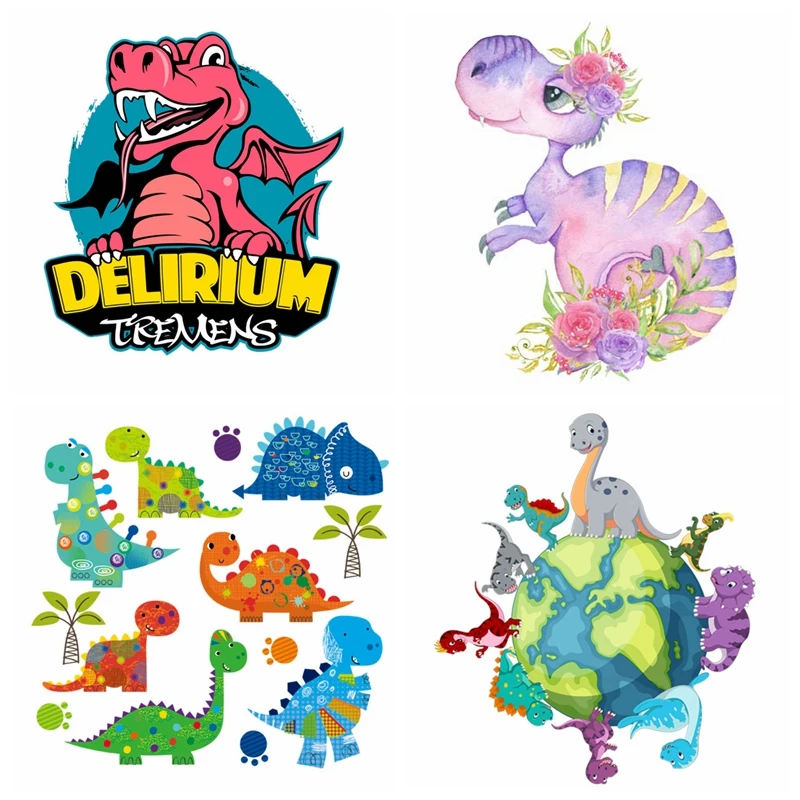 Pegatinas divertidas de transferencia de hierro de dinosaurio para ropa, parches de transferencia de calor para ropa, apliques de transferencia térmica