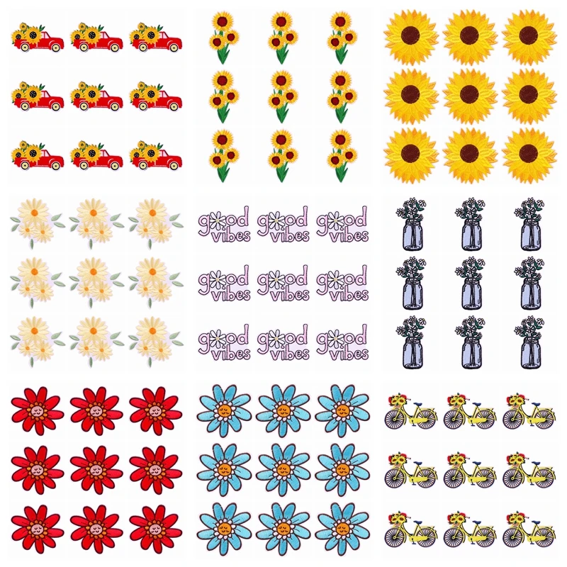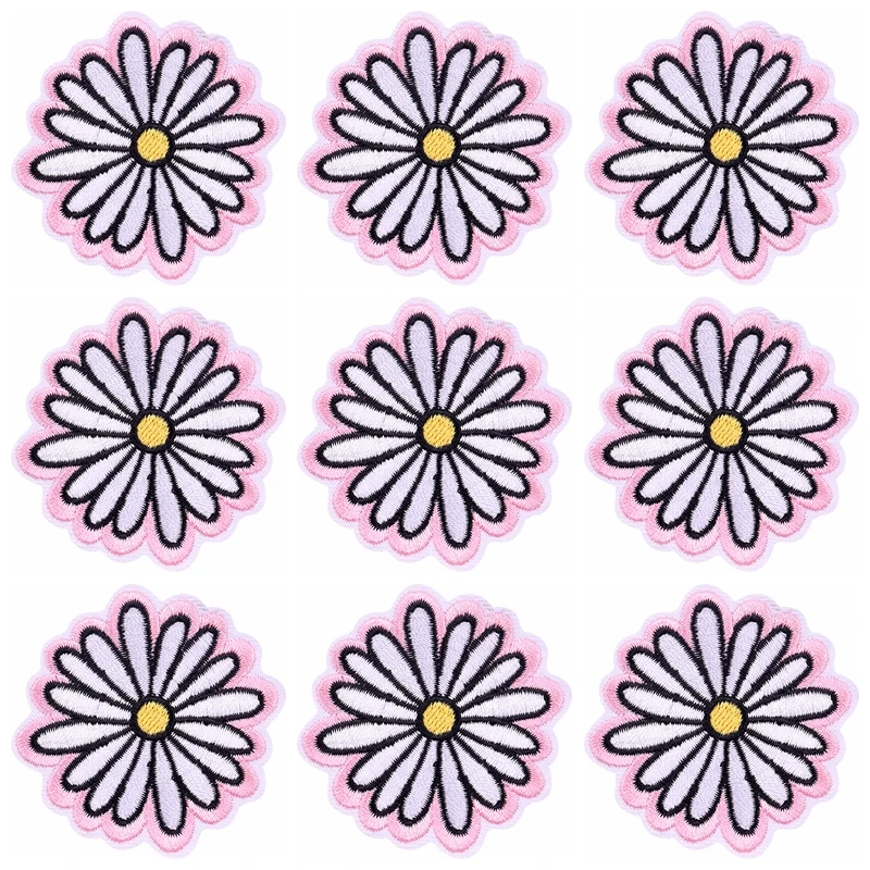 10 unids/lote de pegatinas de flores para ropa, Parche de hierro para ropa, parches termoadhesivos, parches bordados en ropa, decoración de rayas