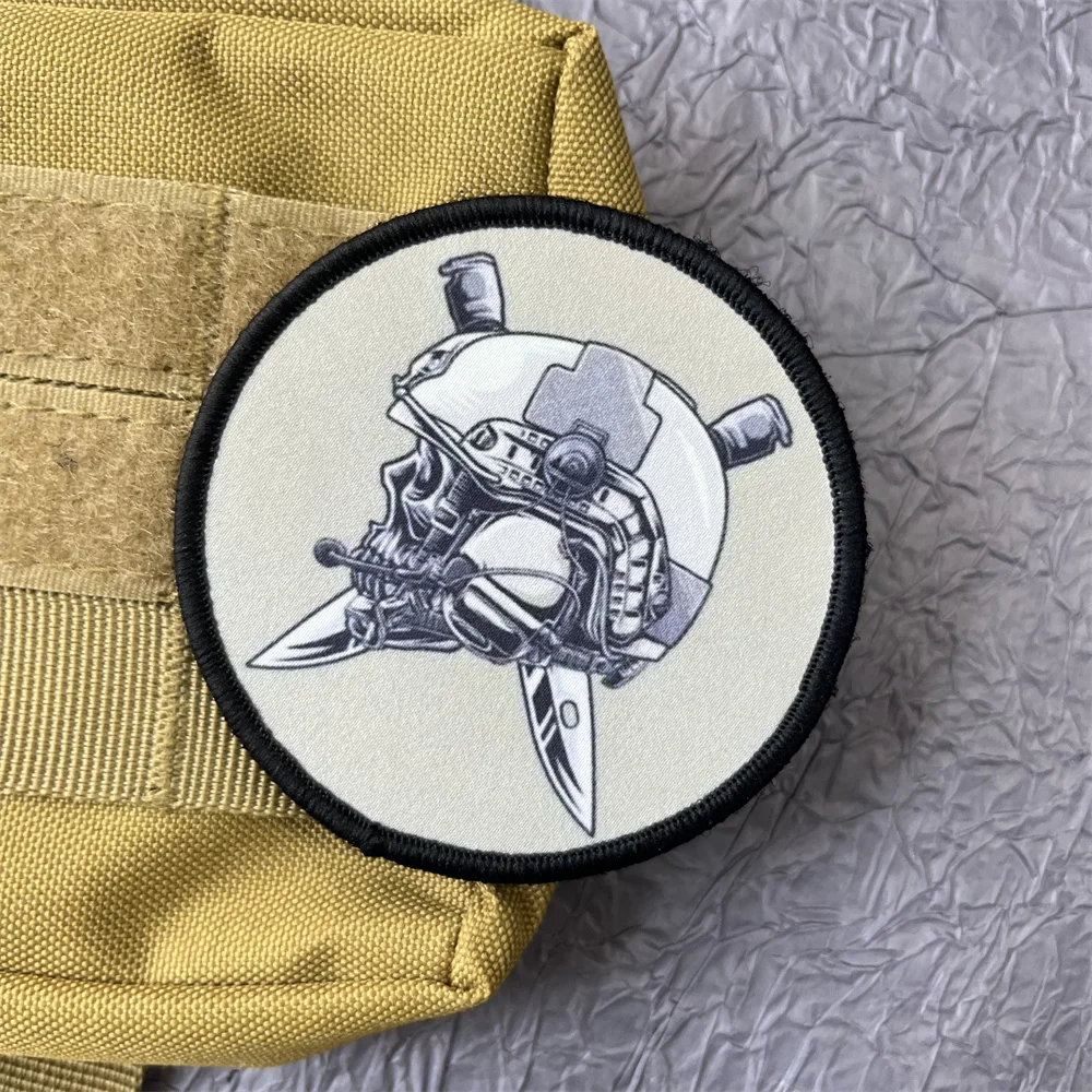 Pegatinas de parche de calavera de Chevron ruso para ropa, parches de gancho y bucle de impresión Digital, Accesorio militar táctico de mochila