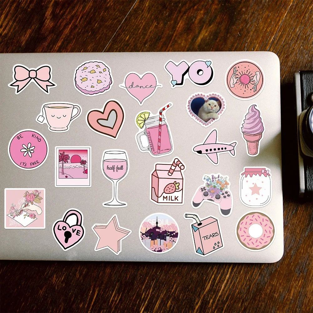 Pegatinas rosas estéticas de niña de dibujos animados