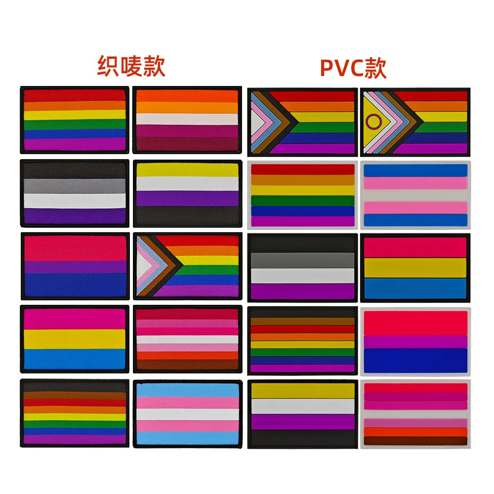 Pegatinas tejidas de goma de PVC de alta calidad, multicolor, Bandera de arcoíris, parches mágicos para ropa, insignias de pegamento, apliques de mochila