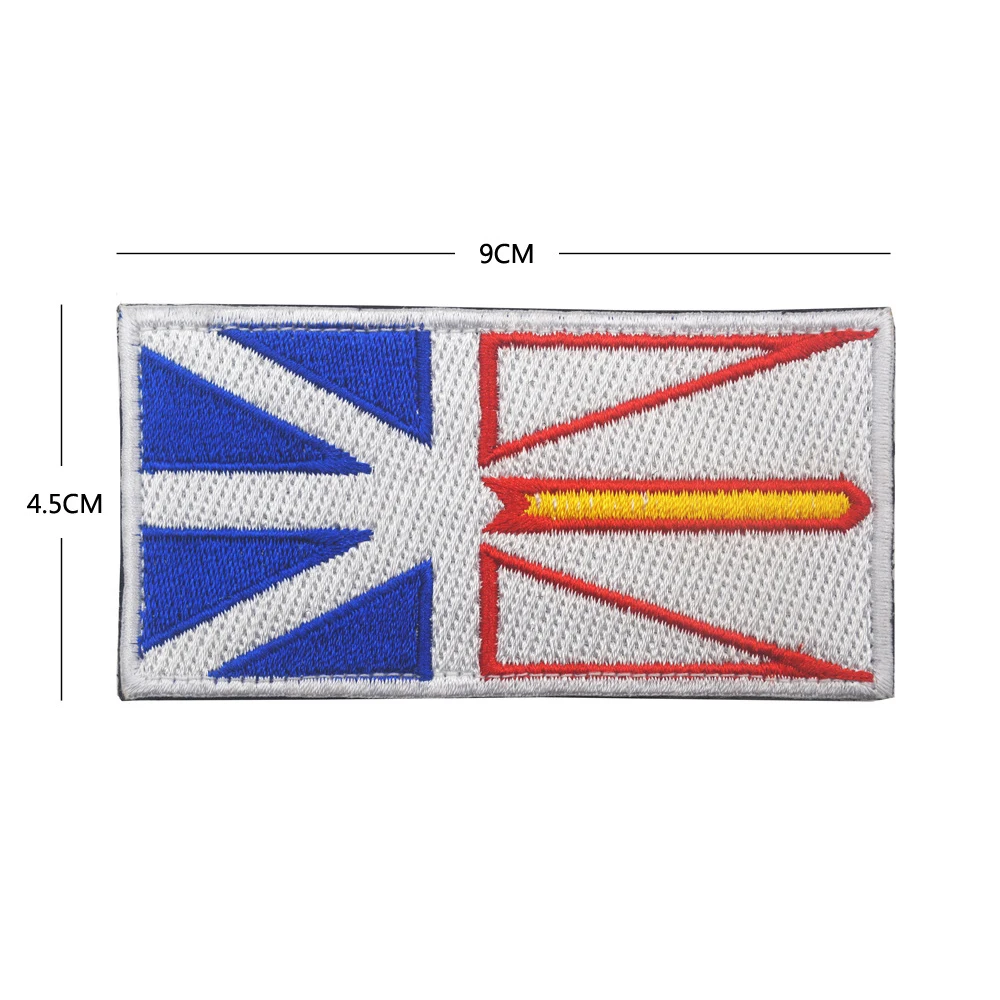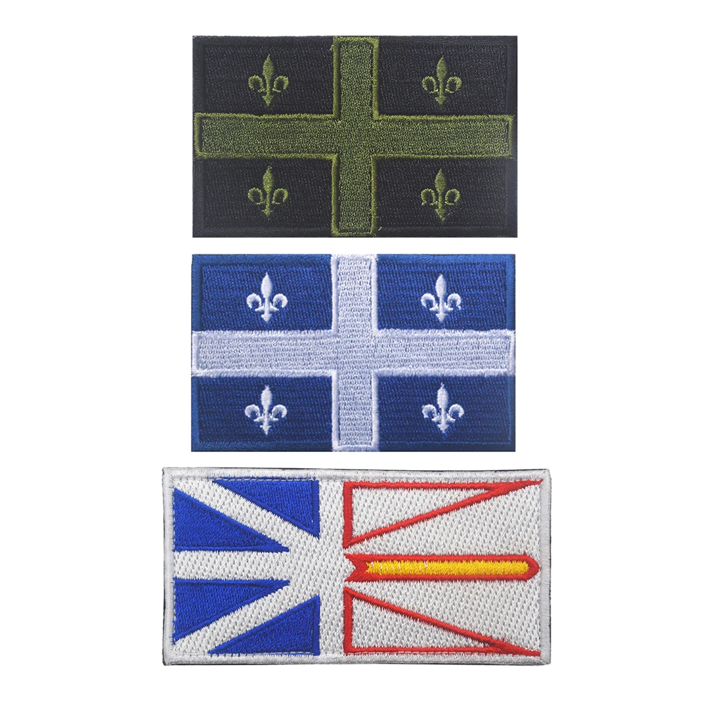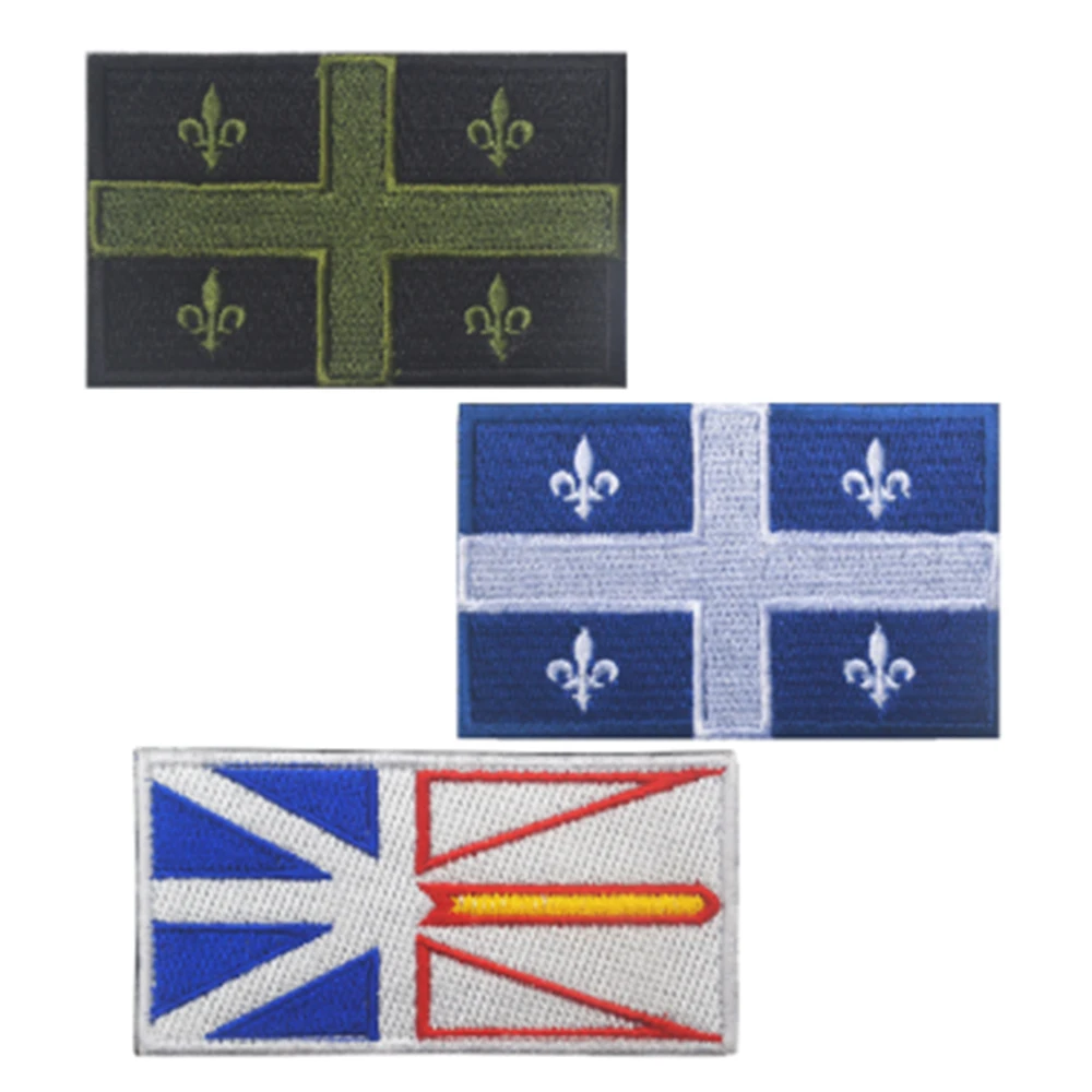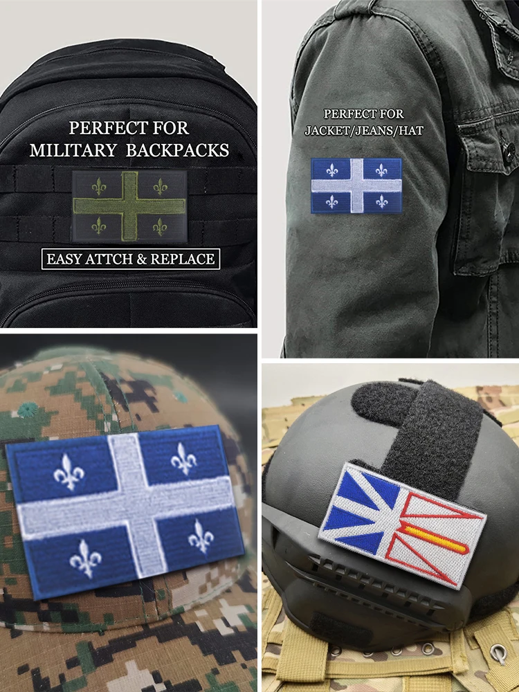 Pegatinas de tela bordadas con bandera, parche militar, Bandera de Quebec de Canadá, Newfoundland Hook & Loop, mochila, insignia de decoración de ropaInstrucciones de uso 1. Pegar directamente el área donde la tela está unida a la superficie de la lana. 2. De lo contrario, cose la lana donada en la prenda y péguela después de coser.