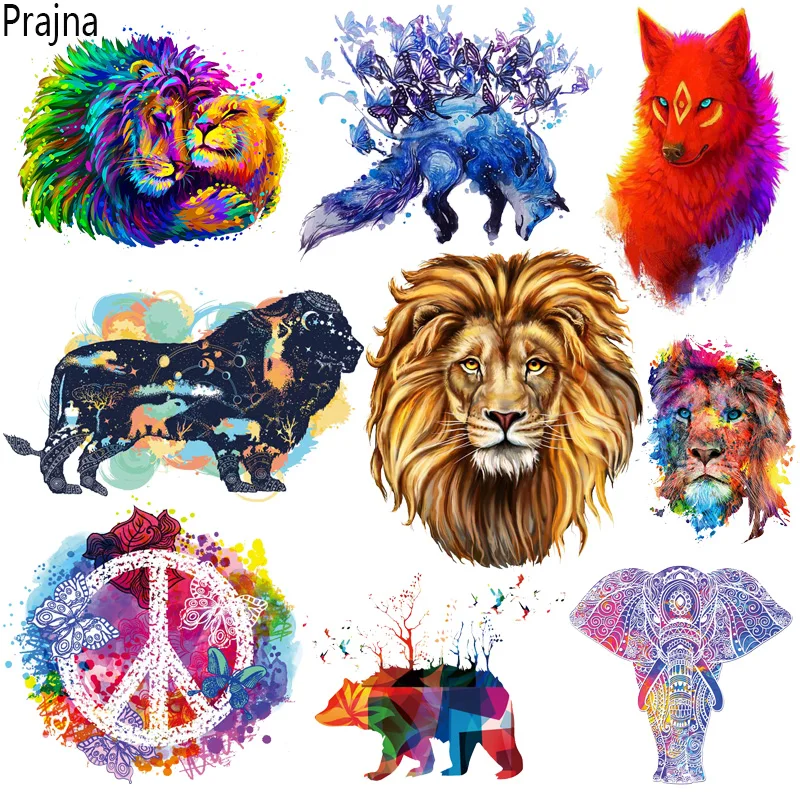 Pegatinas térmicas de león/Animal para planchar en la ropa, parches de transferencia de calor, elefante, zorro, rayas de bricolaje, apliques de ropa