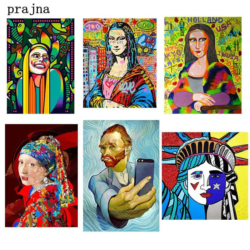 Pegatinas térmicas de transferencia de hierro de Van Gogh Mona Lisa para ropa, camiseta, pintura colorida DIY, aplique de parche de transferencia de calor