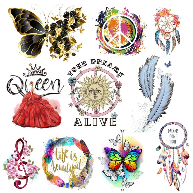 Pegatinas de transferencia térmica de plumas de colores, parches de transferencia de calor para planchar para ropa, camiseta DIY