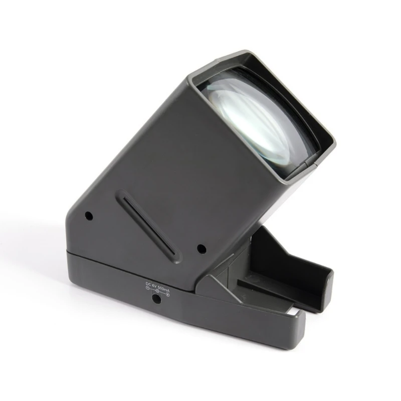 Esta visor portátil con una caja de luz LED incorporada, adecuada para cualquier entorno.