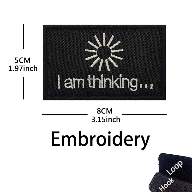 Estoy pensando... Parches bordados con apliques de ropa con emblema de moral táctica con gancho y bucle, insignia inspiradora, pegatinas para mochila
