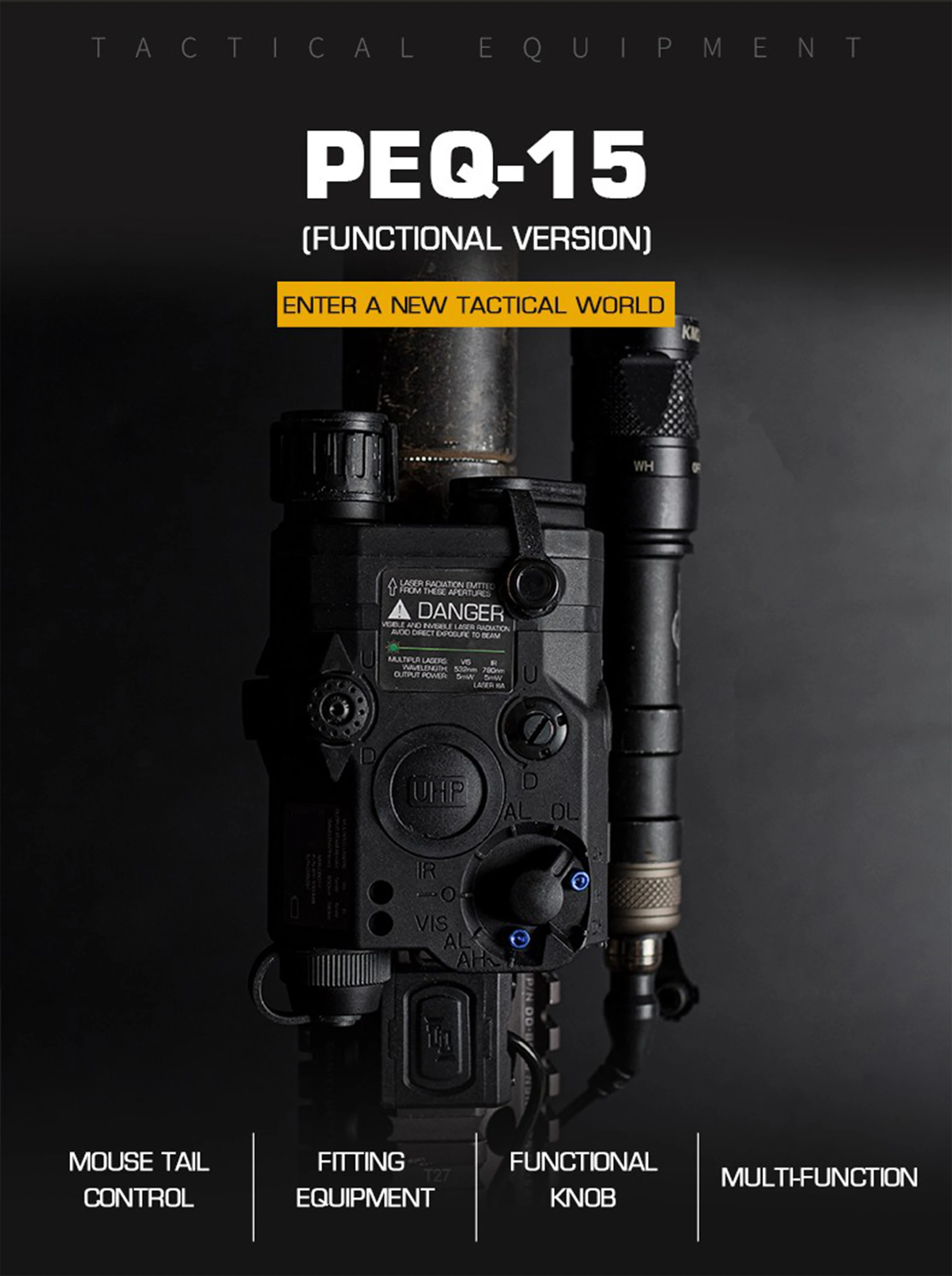 Iluminador infrarrojo de luz de arma de simulación con todas las funciones PEQ-15 Original/laser infrarrojo y láser visible/tres modos