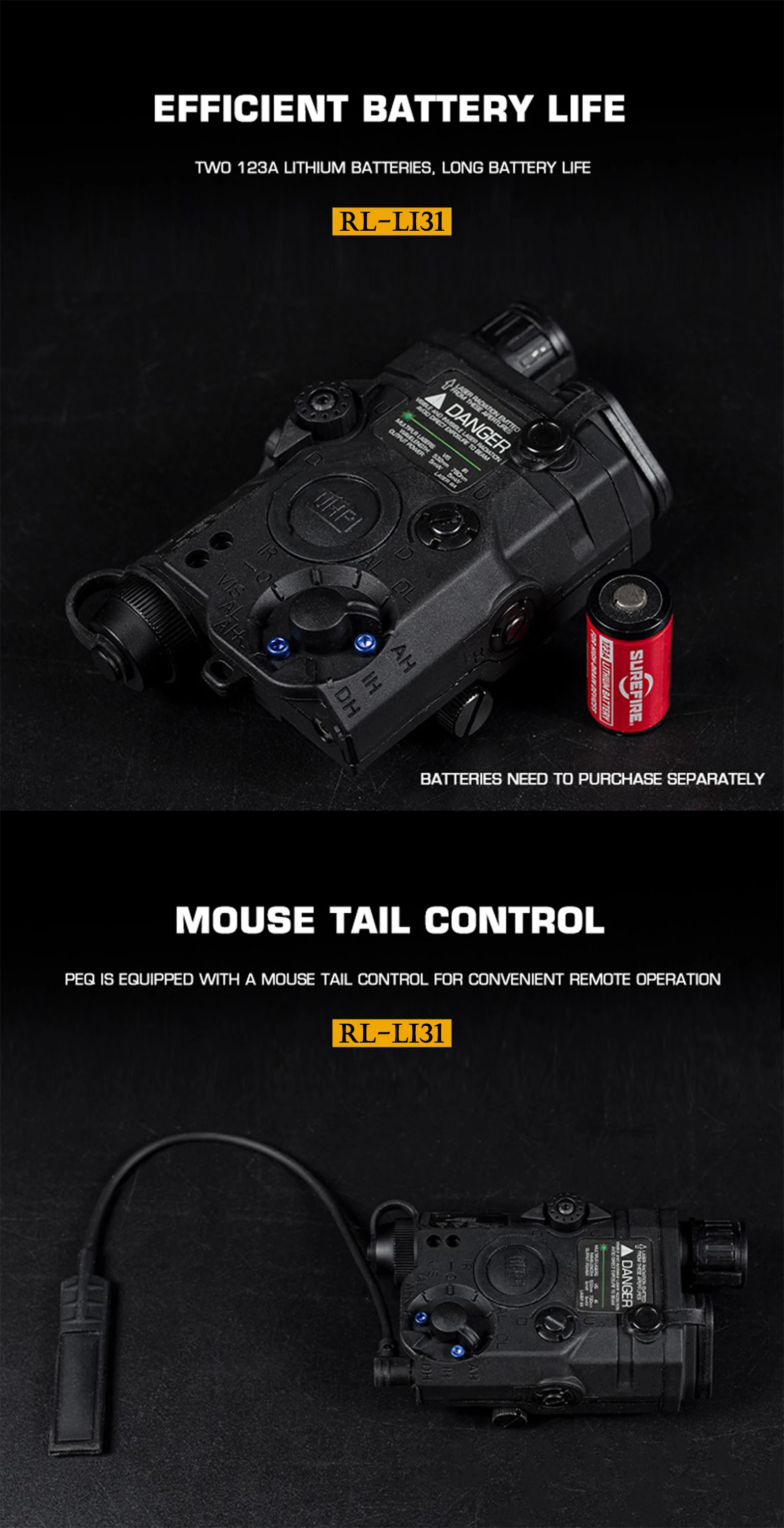 -Utiliza 2 pilas de litio de 123A (las pilas deben comprarse por separado)