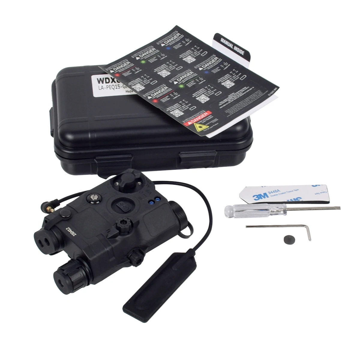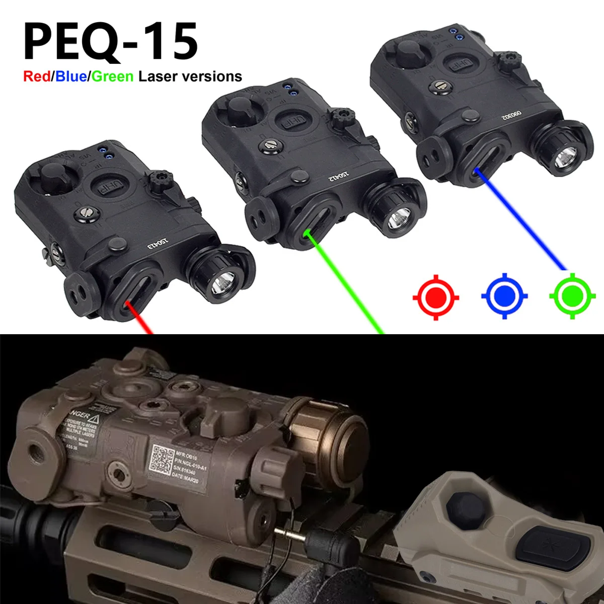 PEQ-15 PEQ15 punto rojo verde azul luz de relleno IR interruptor la-ser indicador táctico Airsoft arma explorador luz LED linterna estroboscópica