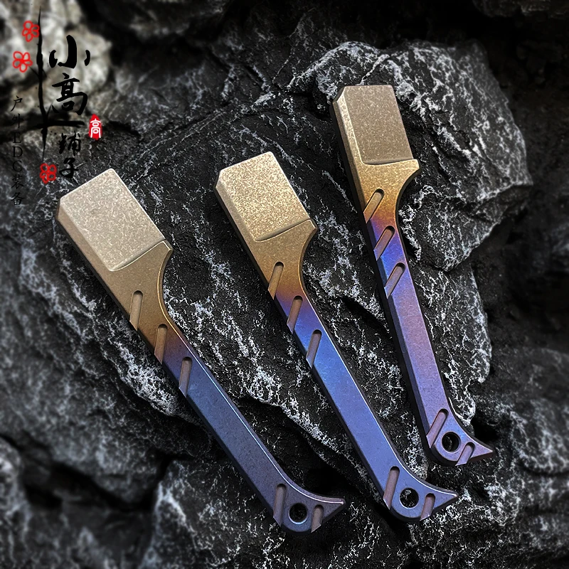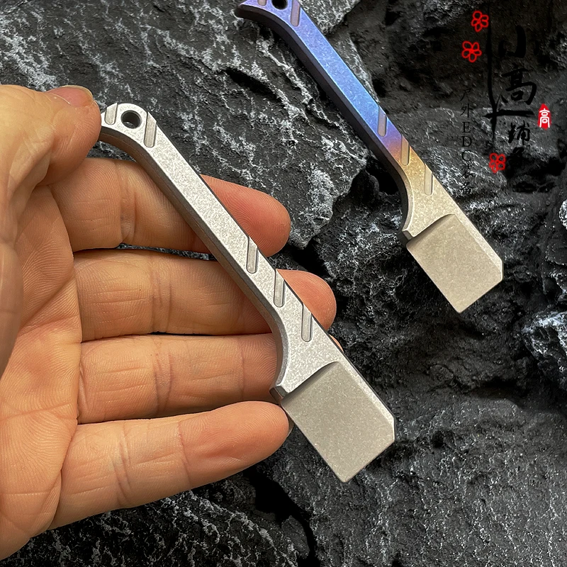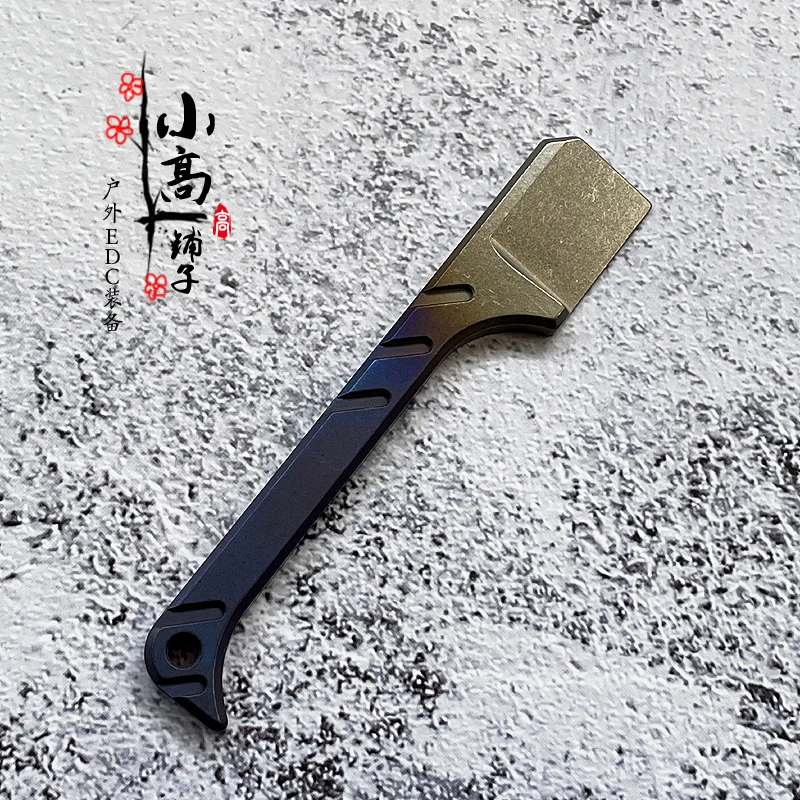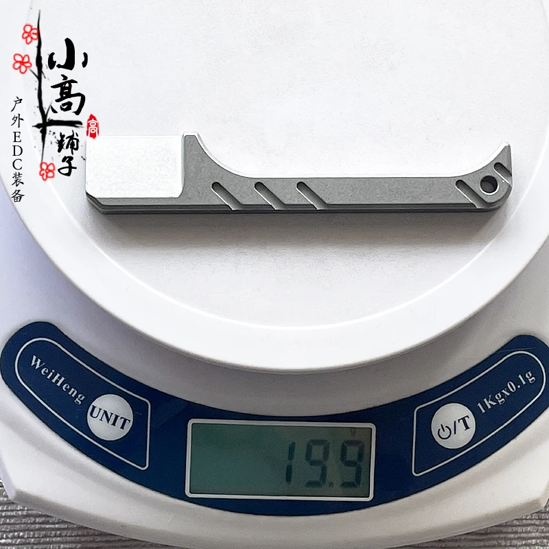 Note: although this product is shaped like a razor, it is not edged, but can be opened out of the box.Material: TC4 titanium alloyDimension: total length 60mm thick 5mm front width: 18mm handle width: 8mmWeight: about 20gMobile phone physical shooting: