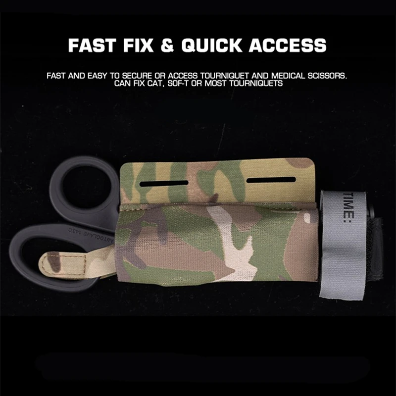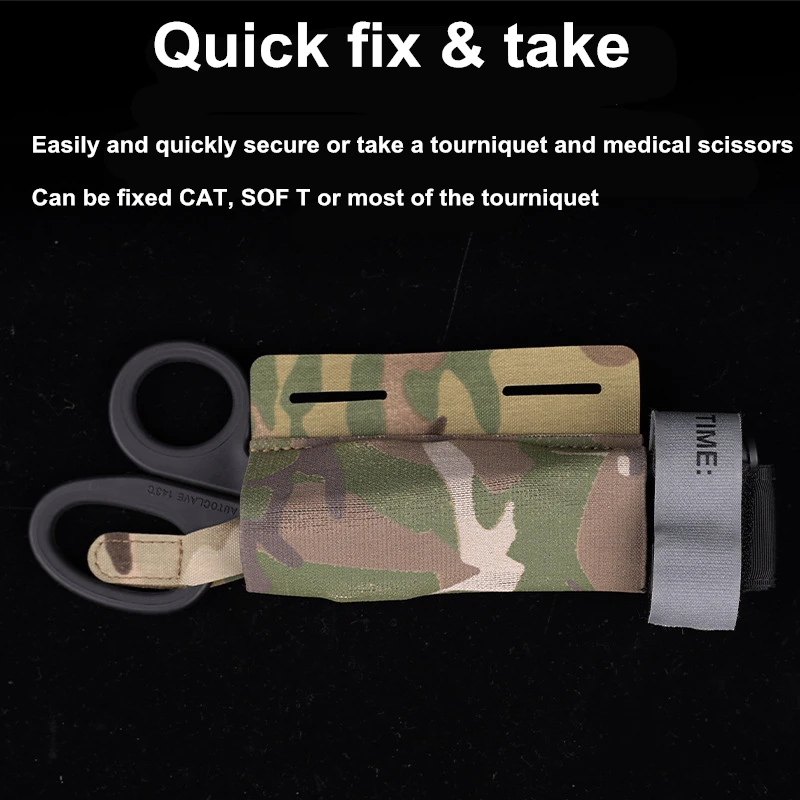 Fijación rápida y Acceso rápido: torniquete y tijeras médicas rápidos y fáciles de asegurar o acceder, se pueden arreglar para la mayoría de los torniquetes.