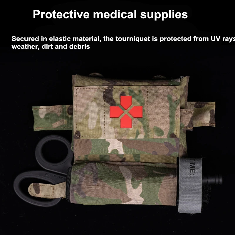 Protege los suministros médicos: fijado en material elástico, puede proteger mejor el torniquete de los rayos UV, el clima, la suciedad y los escombros.