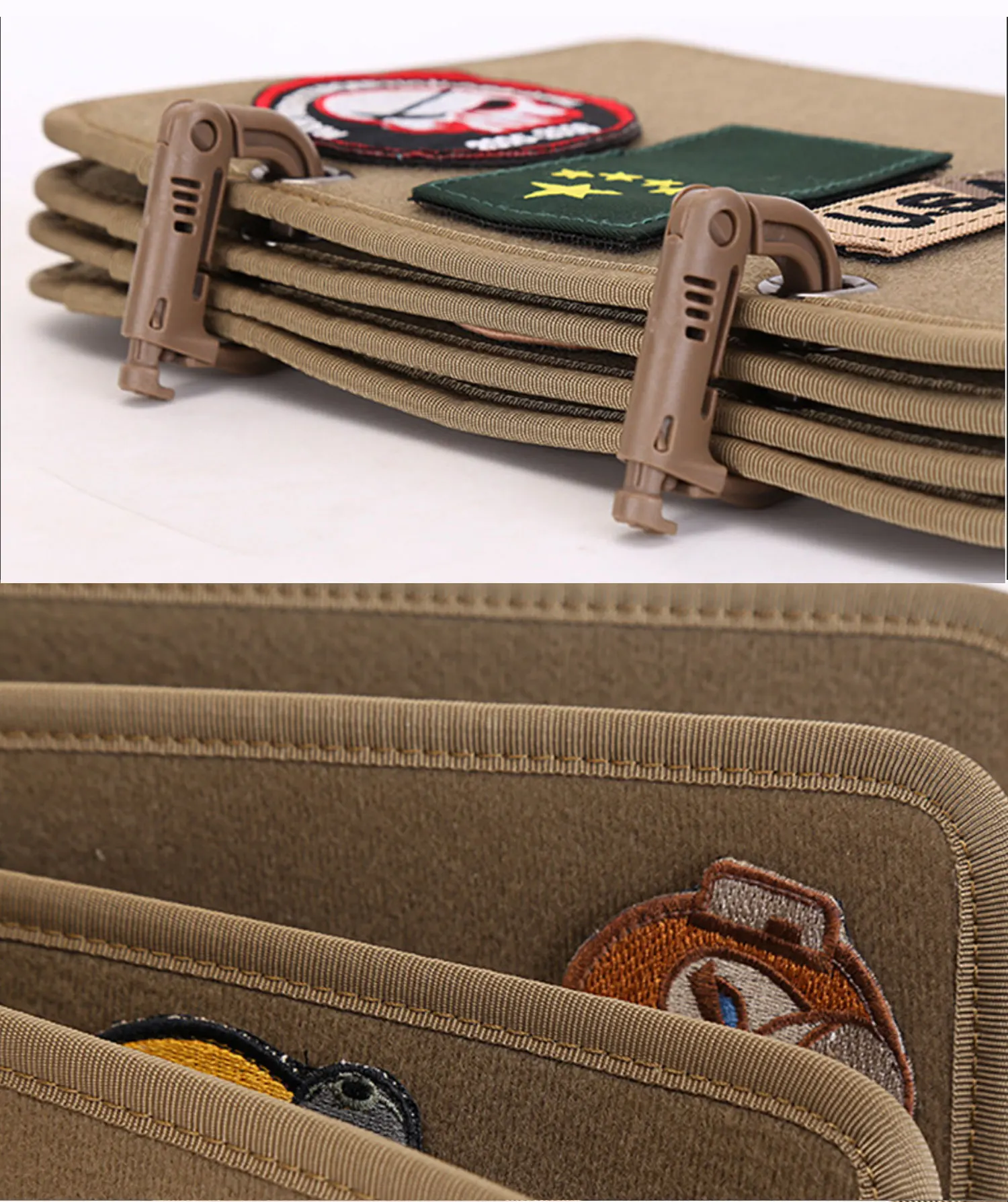 Pequeño libro de almacenamiento, tablero organizador con gancho, insignia de moral, tablero de entretenimiento táctico, insignia de brazo, tablero adhesivo, almohadilla de tela de exhibición
