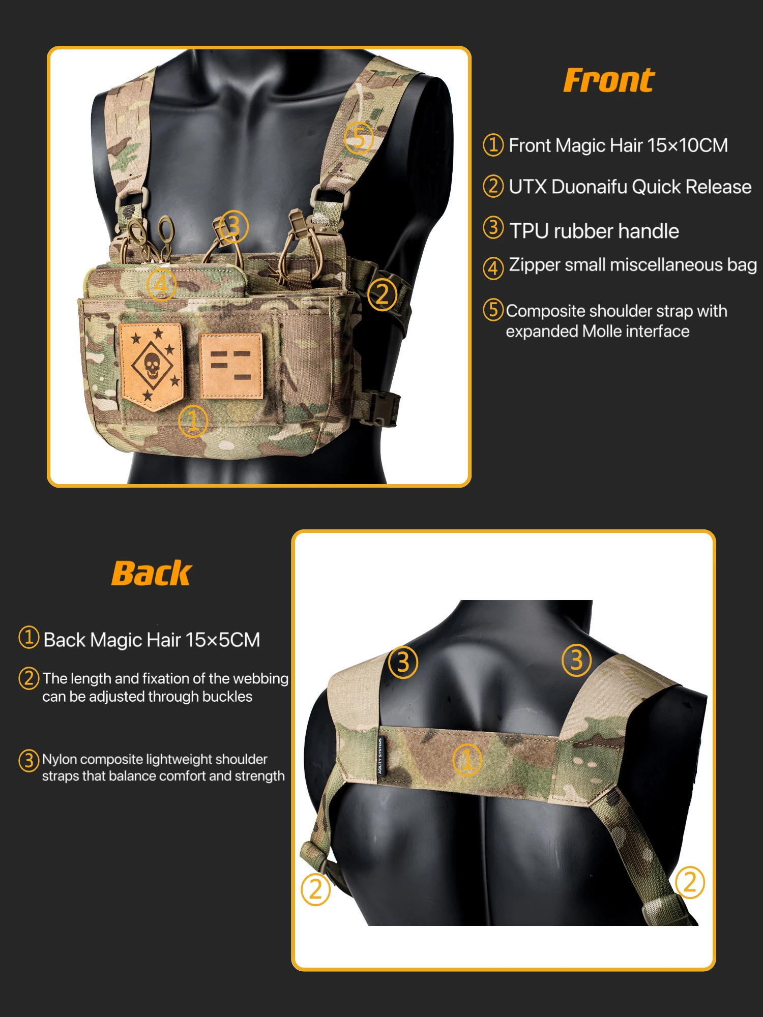 Pharaoh FERRO Style DOPE Percha de pecho Mini combinación Percha de pecho táctica ligera