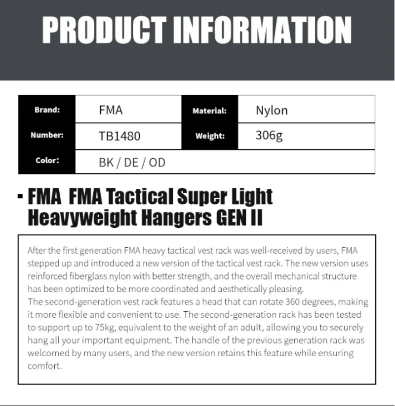 Perchas tácticas superligeras y pesadas FMA GEN II 360° Rotación TB1480