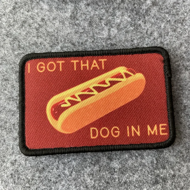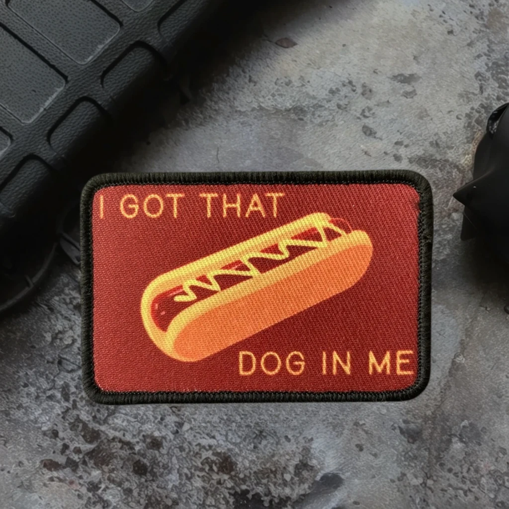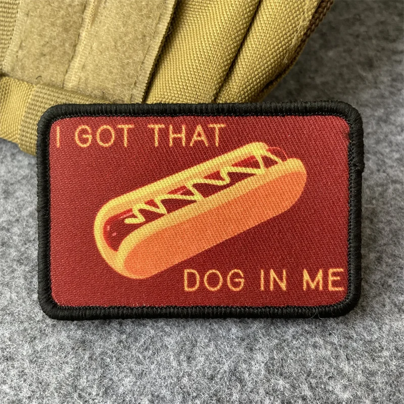 Tengo ese perro en mí Hot Dog parche táctico estampado gancho y bucle brazalete moral insignia mochila pegatinas