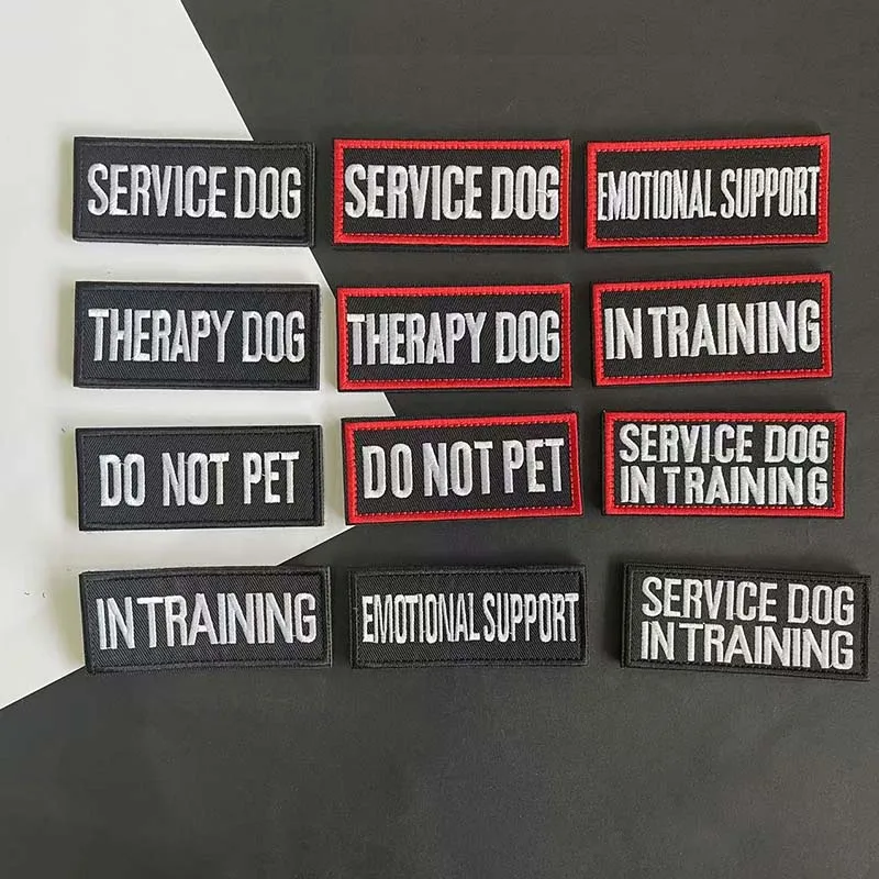 Llegó al Reino Unido en una semana. Perfecto para arneses con velcro. Advierte a las personas sobre caricias no deseadas de extraños.