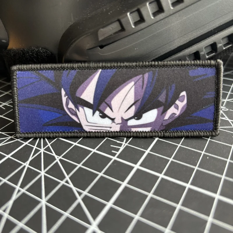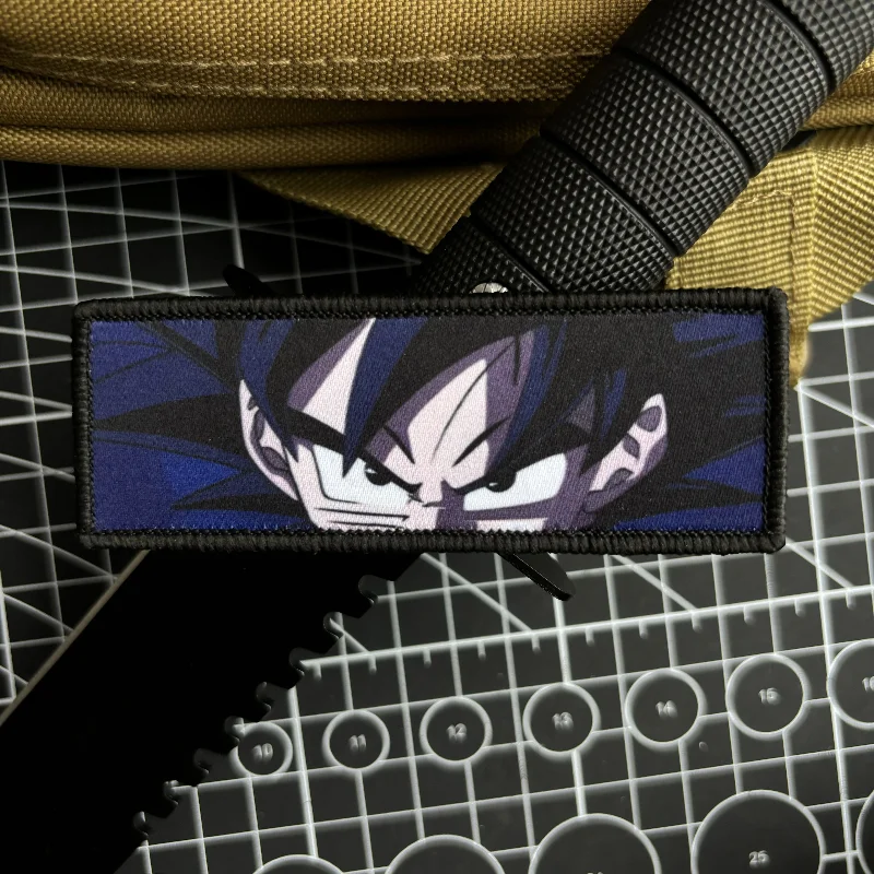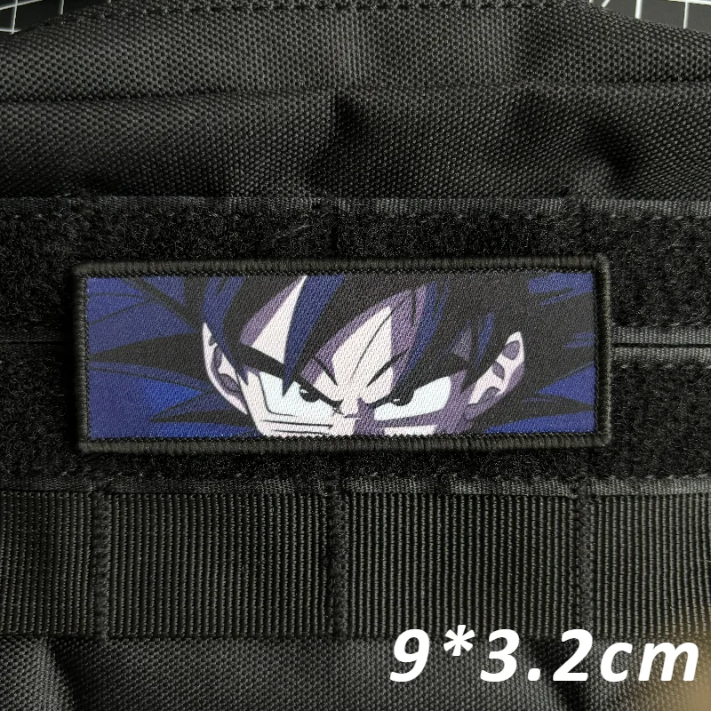 Personaje de Anime Goku Eyes Morale insignia elemento cuadrático parche gancho y bucle impresión dibujos animados táctico militar mochila pegatina