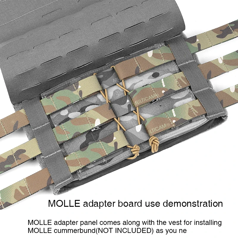 Paquete: chaleco táctico * 1, panel adaptador MOLLE * 1, faja de liberación rápida * 2 (la placa no está incluida).