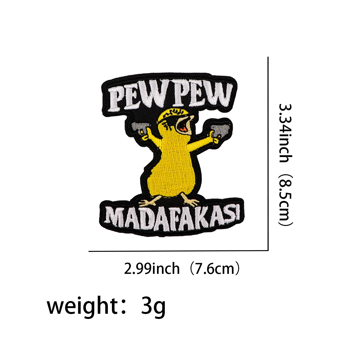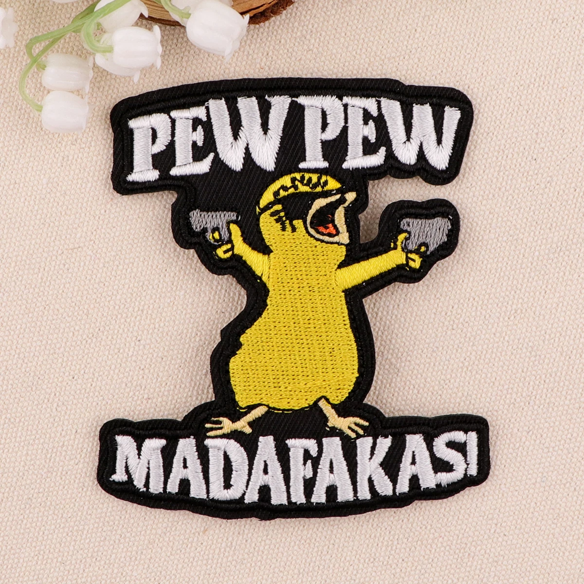 PEW PEW divertidas parches con citas de pato para ropa, parches, apliques, insignias para planchar, pegatinas para ropa, costura DIY, rayas bordadas