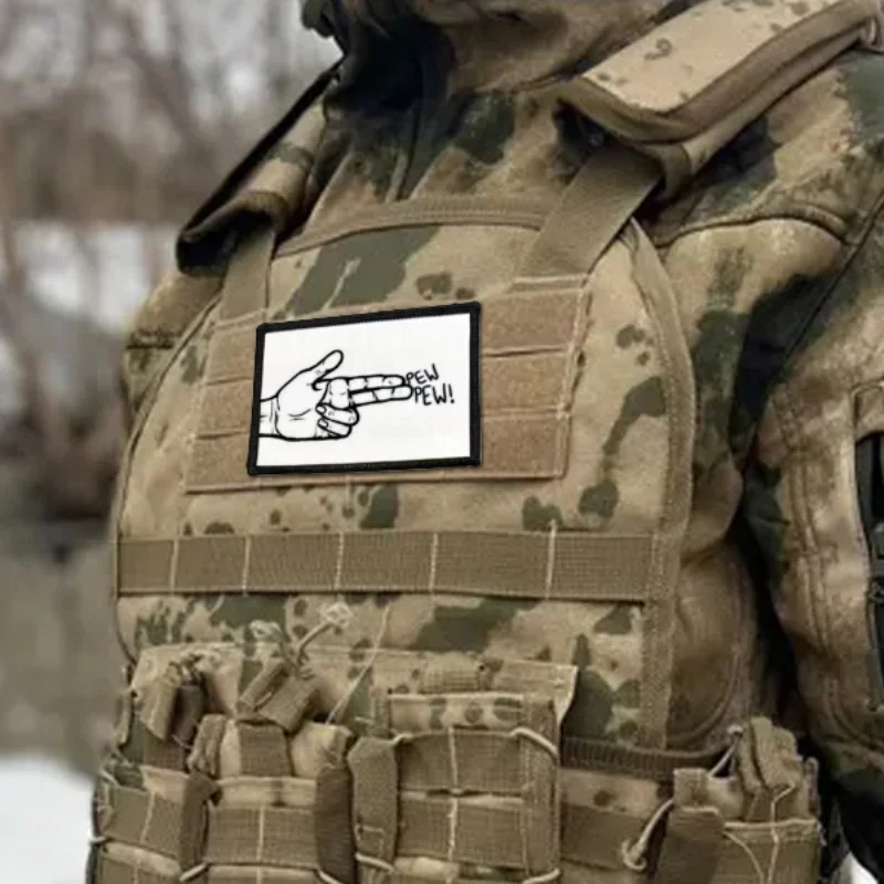 Pew Pew Gesto Pistola Moral Insignia Brazalete Divertido Parches de gancho y bucle impresos Pegatinas tácticas para mochila