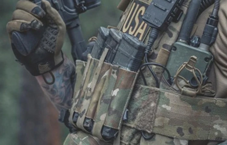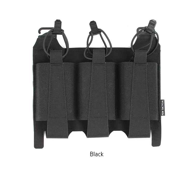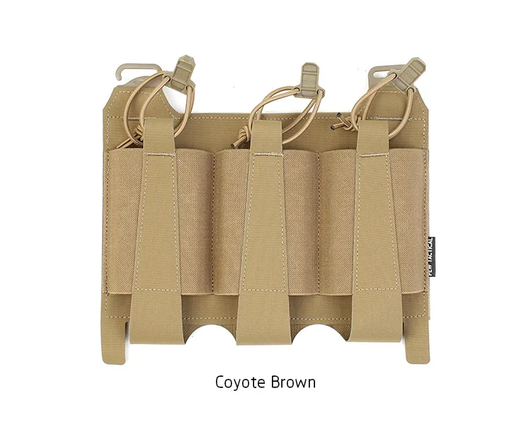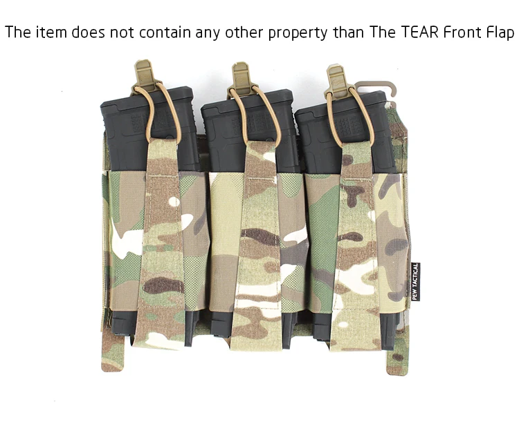 La solapa frontal Triple Elastic AR (TEAR) es un perfil extremadamente bajo y una opción de Extracción rápida para llevar tres cargadores AR. Las bolsas elásticas ofrecen una retención positiva en las revistas.