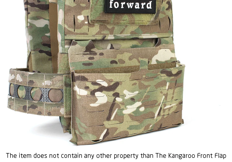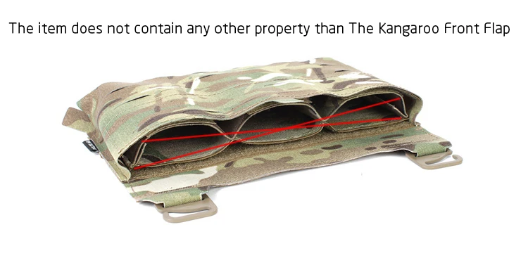 La solapa frontal KANGAROO para usar nuestros insertos de cargador (KTS/Turnovers) y, al mismo tiempo, permite sujetar bolsas compatibles con MOLLE al frente.