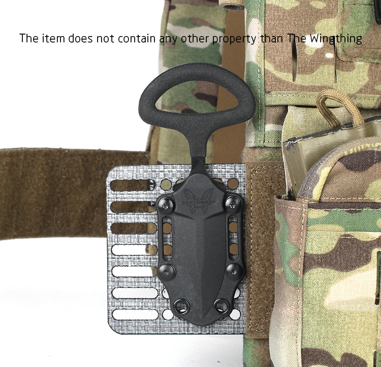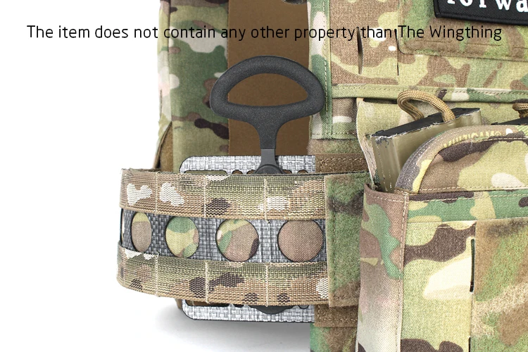 Wingthing es una versión de plataforma de montaje universal de nuestra popular bolsa Wingman.Diseñado originalmente para proporcionar una solución de montaje de cuchillo a su transportista, el Wingthing también es compatible con MOLLE y permite el montaje de bolsas MOLLE de su elección.El diseño rígido proporciona una plataforma perfecta para soportar la mayoría de los artículos, especialmente los artículos más pesados como las radios.El espaciado entre orificios y ranuras se adapta a la mayoría de las fundas de cuchillos Kydex.Úselo en el costado del portaplacas o como configuración Dangler personalizada.Siéntete libre de usar tu imaginación y adaptar esta plataforma a lo que quieras.