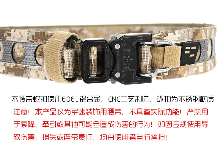 ¡Atención!¡Este producto es solo un cinturón para que los entusiastas militares decoren y no tiene ninguna función real!¡Está estrictamente prohibido utilizarlo para descenso de cables, remolque o cualquier otro comportamiento que pueda causar lesiones!
