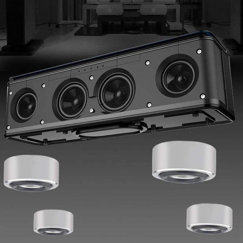 Almohadilla de pies de fijación de altavoz de 4 piezas, aislamiento, absorción de impactos, base de amplificador, pies, cubierta de soporte de aleación de aluminio