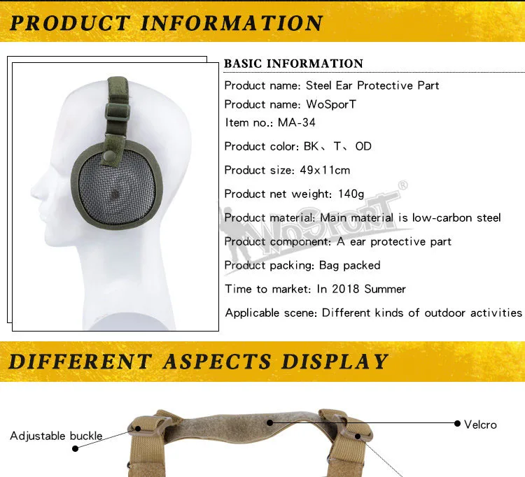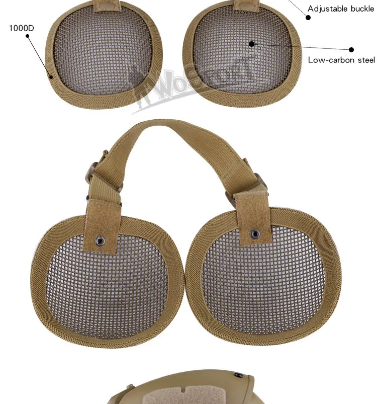 Pieza protectora de oídos de malla de acero táctica para deportes al aire libre