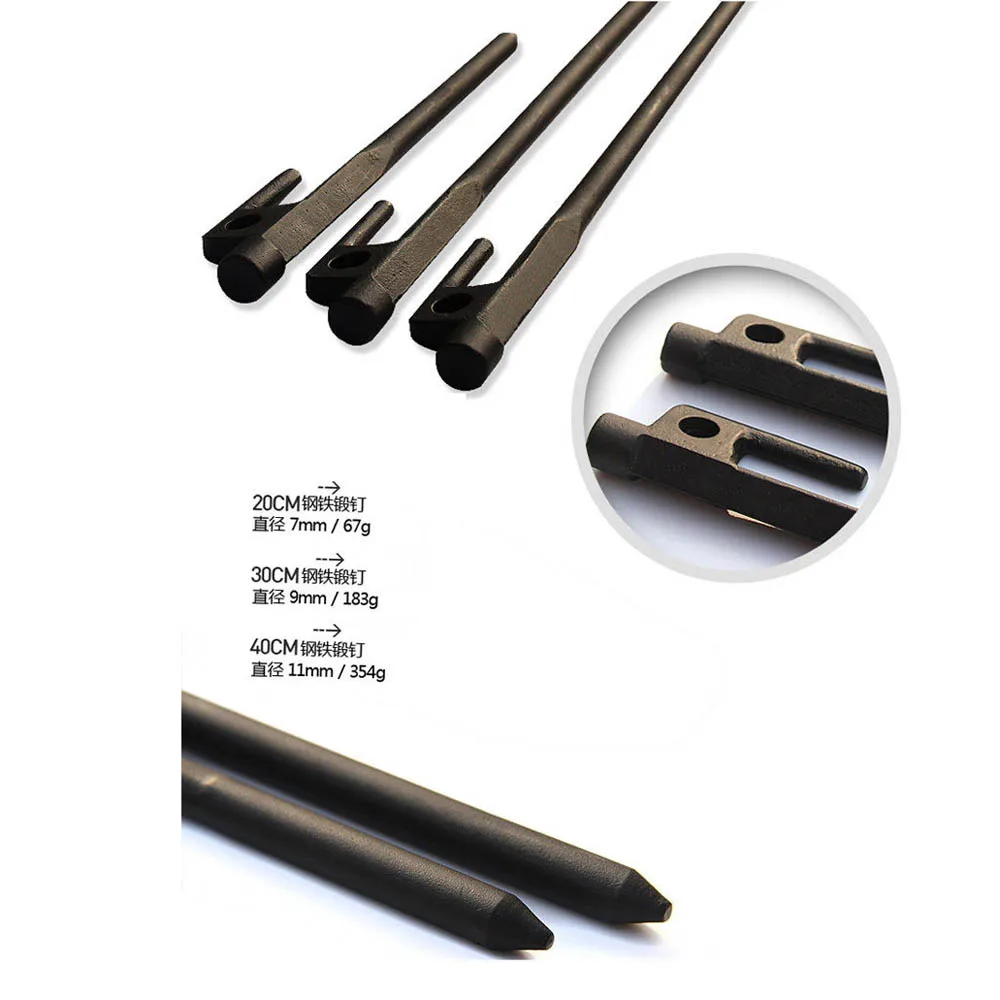 Una pieza de tachuelas de suelo de tienda de campaña negras de acero forjado a mano con clavos de tienda de 40CM