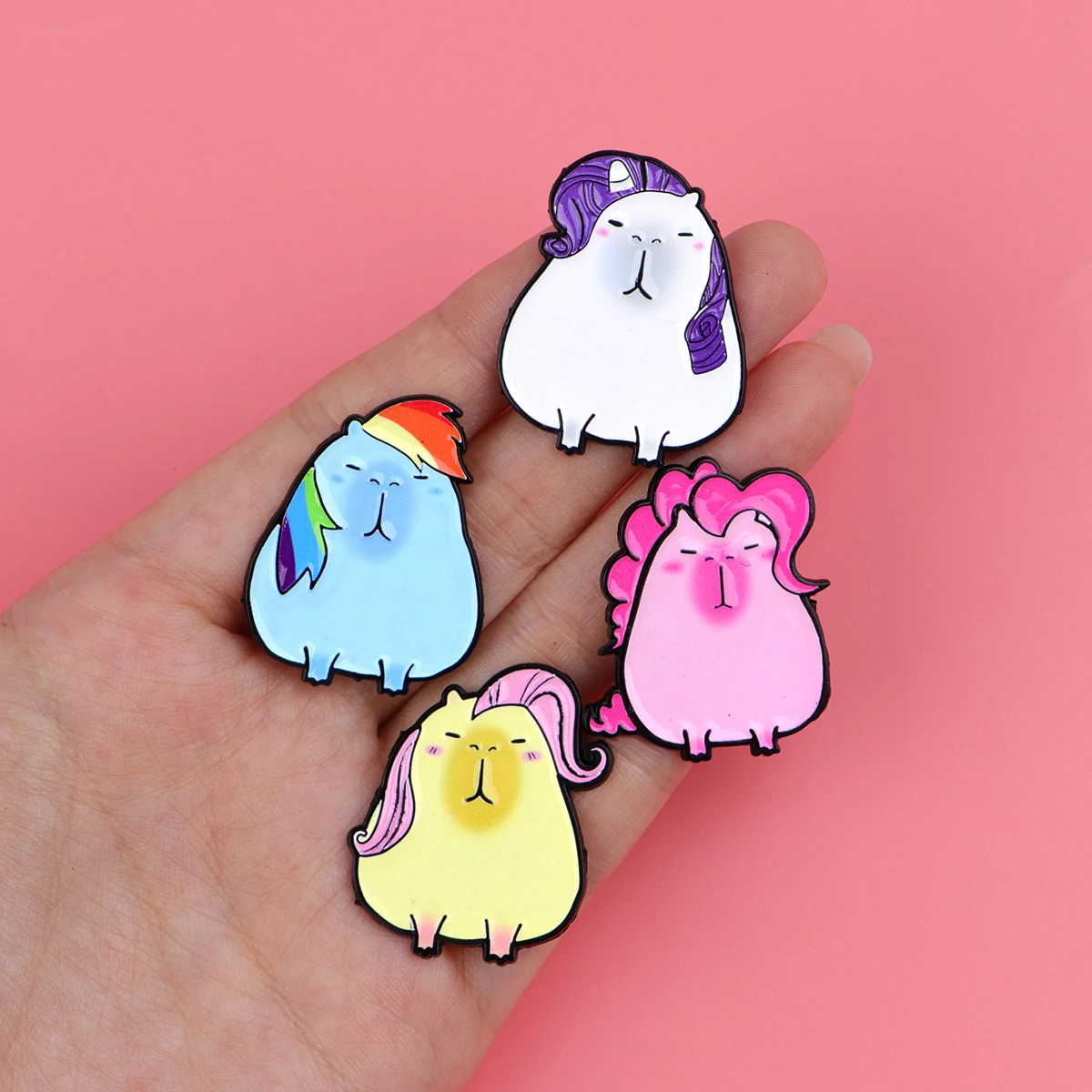 Pin esmaltado de gato colorido para solapa, conjunto de broche de capibara de dibujos animados, decoración de ropa, alfileres de Metal, mochila, sombrero, insignia, accesorios, 5 uds.