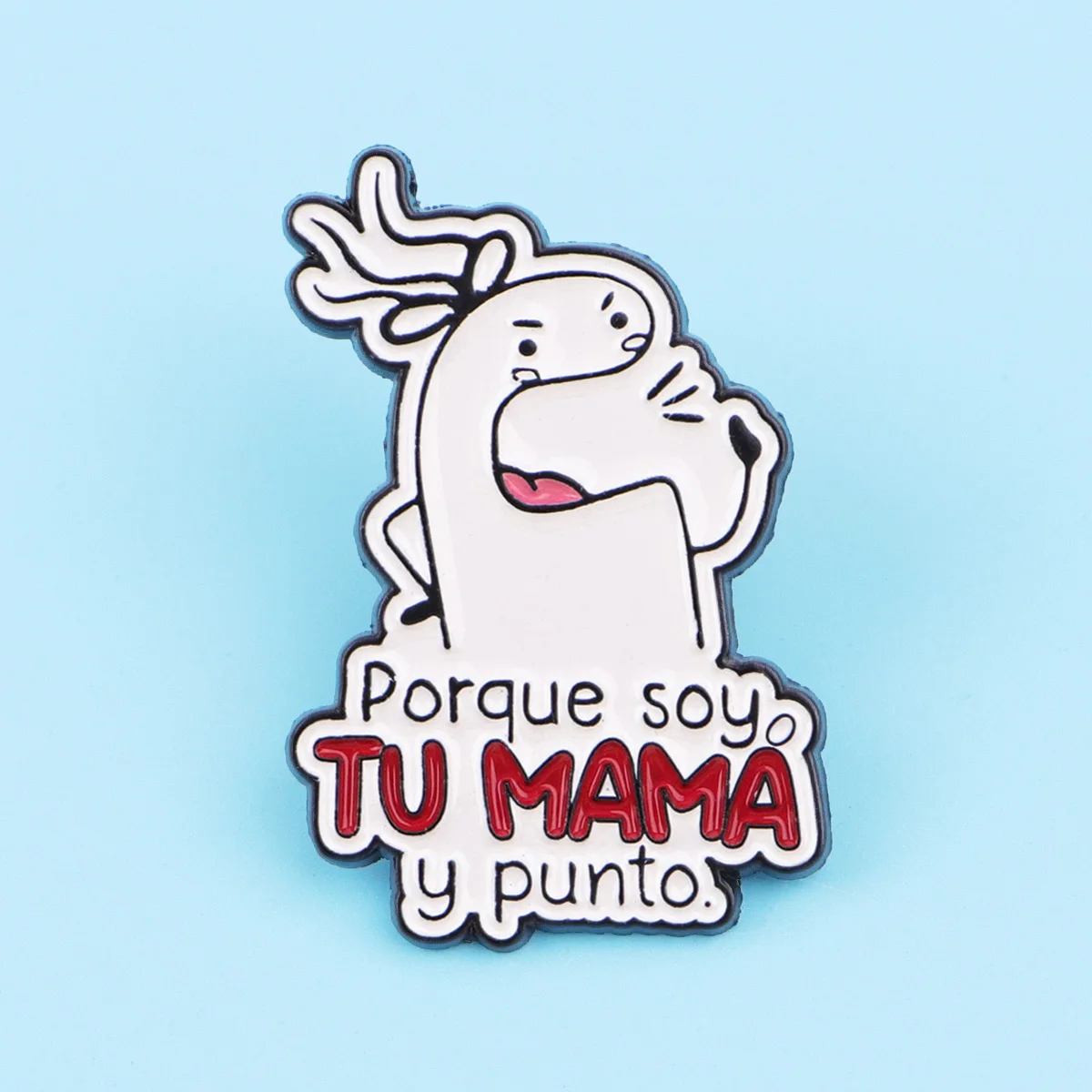 Pin de Esmalte con Figura de Cerveza Divertida - 'Porque soy TU MAMA y punto' Broche con Frase en Español para Chaquetas y Mochilas, Regalo Humorístico